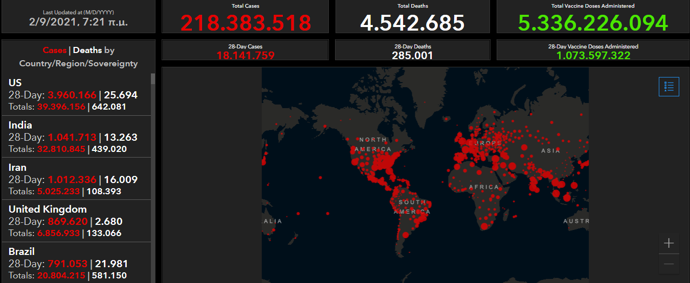 Η εικόνα της πανδημίας αυτή την ώρα στον κόσμο