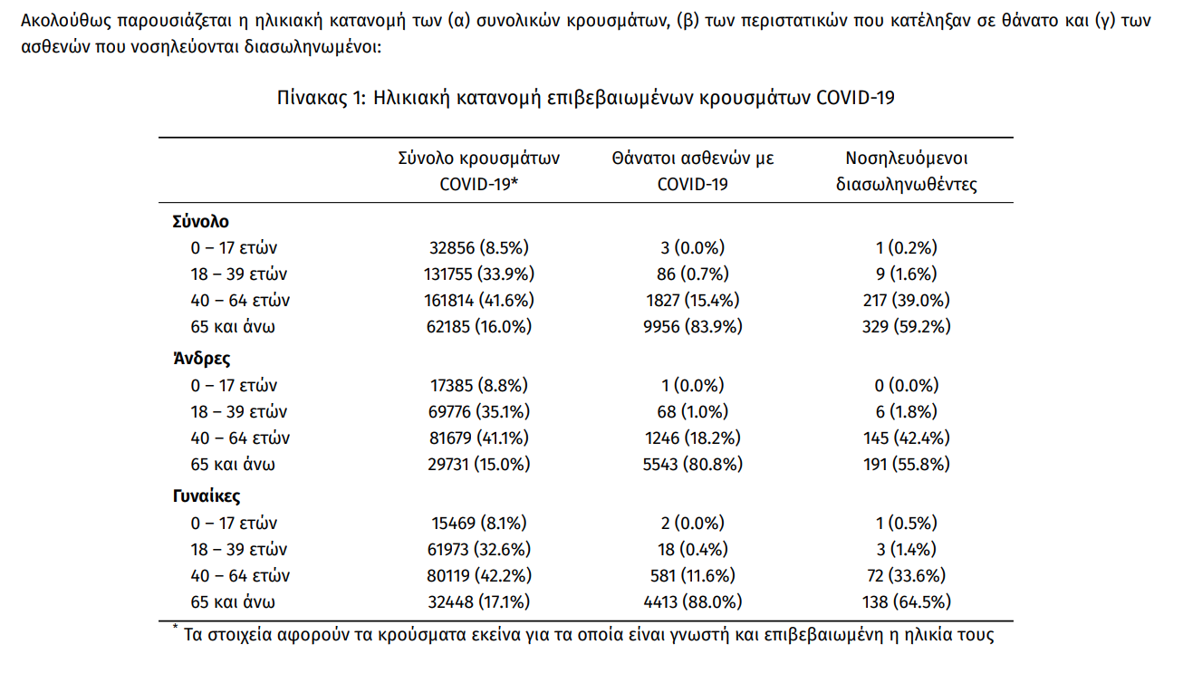 Δείτε τον σχετικό πίνακα που δημοσίευσε σήμερα ο ΕΟΔΥ: