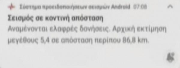 «Αναμένονται ελαφρές δονήσεις. Αρχική εκτίμηση μεγέθους 5,4 σε απόσταση 86,8km».