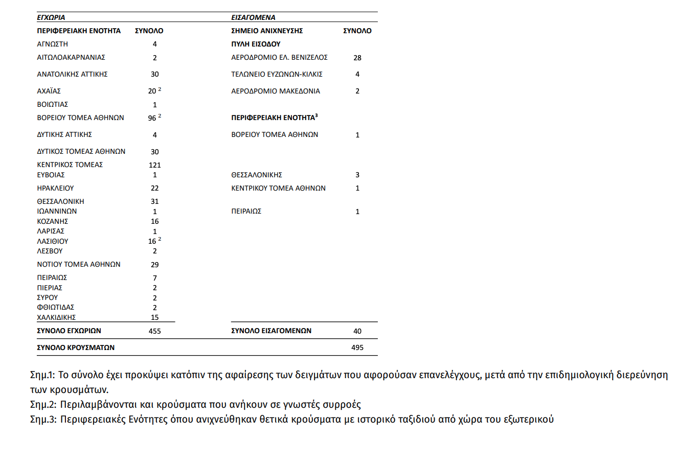 Ανακοινώθηκαν από τον Εθνικό Οργανισμό Δημόσιας Υγείας τα νέα κρούσματα κορονοϊού στην Ελλάδα. Διαβάστε αναλυτικά την επίσημη ανακοίνωση: