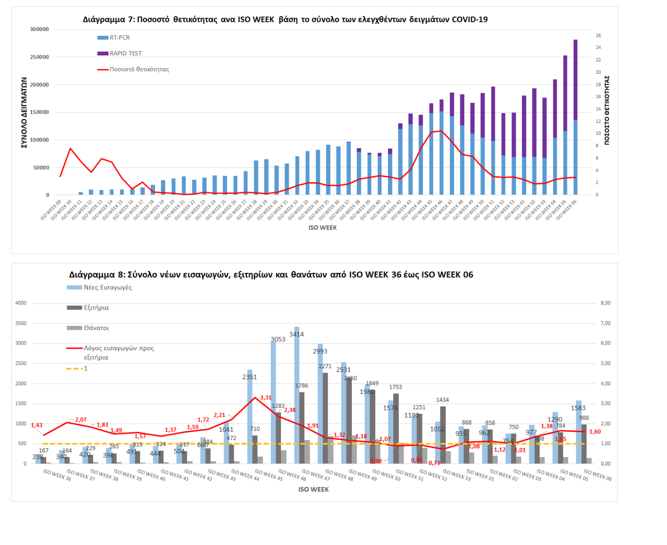 ISO WEEK Την εβδομάδα 08 – 14 Φεβρουαρίου (Iso Week 06) το ποσοστό θετικότητας ήταν 2,90% σε σύνολο 135.865 RT-PCR και 145.929 Rapid Ag τεστ που πραγματοποιήθηκαν.
