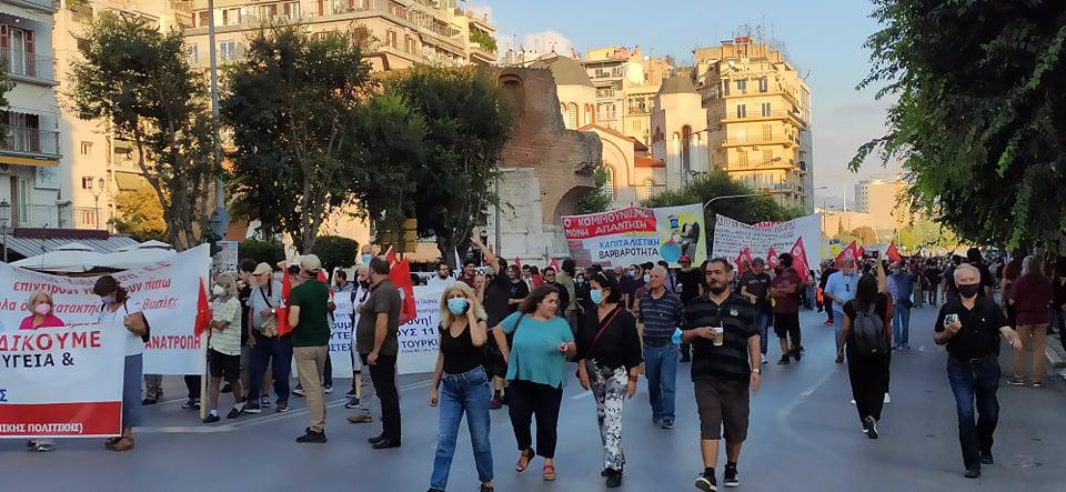 Τα άτομα έχουν συγκεντρωθεί στην πλατεία Καμάρας, με αφορμή τα εγκαίνια της 85ης ΔΕΘ και την παρουσία του Κυριάκου Μητσοτάκη στην πόλη και διαμαρτύρονται ενάντια στην κυβερνητική πολιτική.