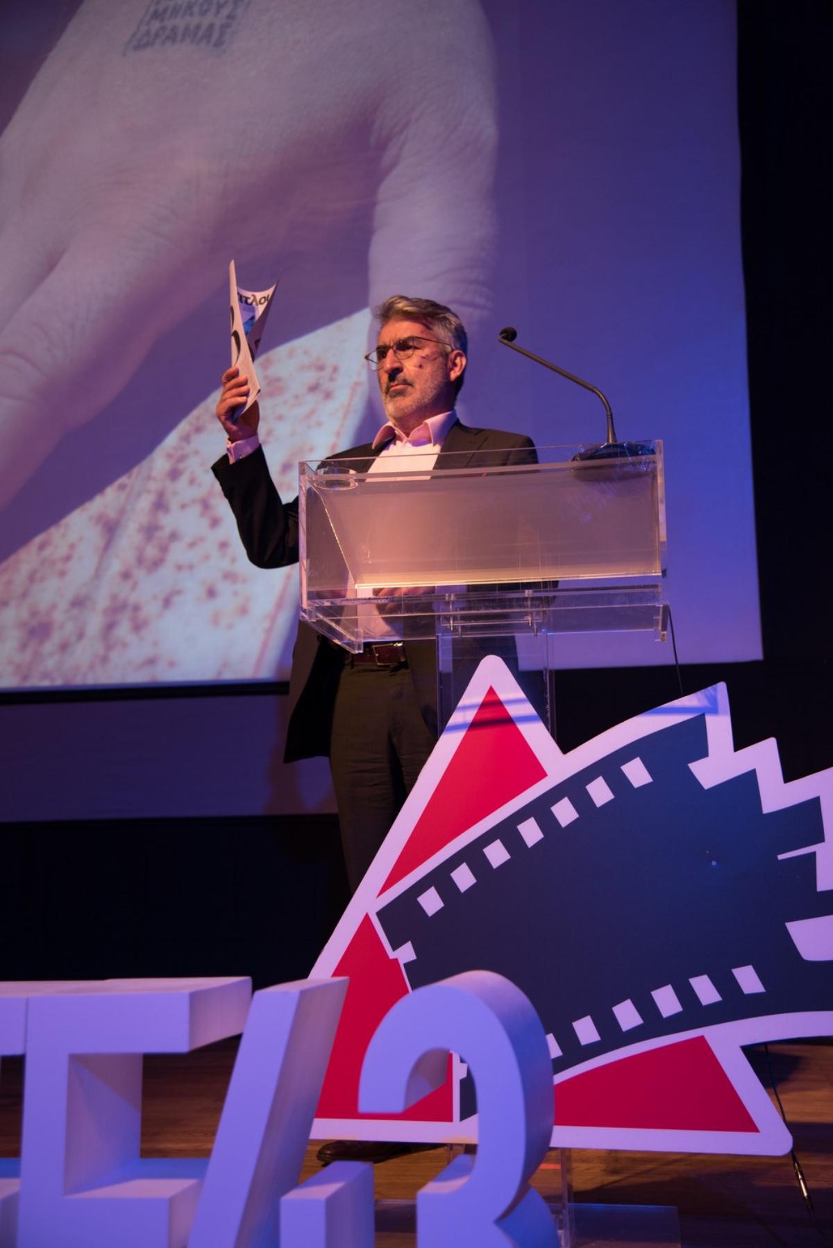 O Γιάννης Σακαρίδης καλωσόρισε στο Φεστιβάλ τον Θανάση Νεοφώτιστο, head programmer του νεοσύστατου Διεθνούς Σπουδαστικού Διαγωνιστικού Προγράμματος και ευχαρίστησε την ομάδα του Φεστιβάλ, τους εθελοντές, τον πρόεδρο Γιώργο Δεμερτζή και τον Δήμαρχο Χριστόδουλο Μαμσάκο «που έκαναν τις υποσχέσεις πράξεις», και βέβαια το ΥΠΠΟΑ και τον Νικόλα Γιατρομανωλάκη προσωπικά, και την Περιφέρεια Ανατολικής Μακεδονίας Θράκης.