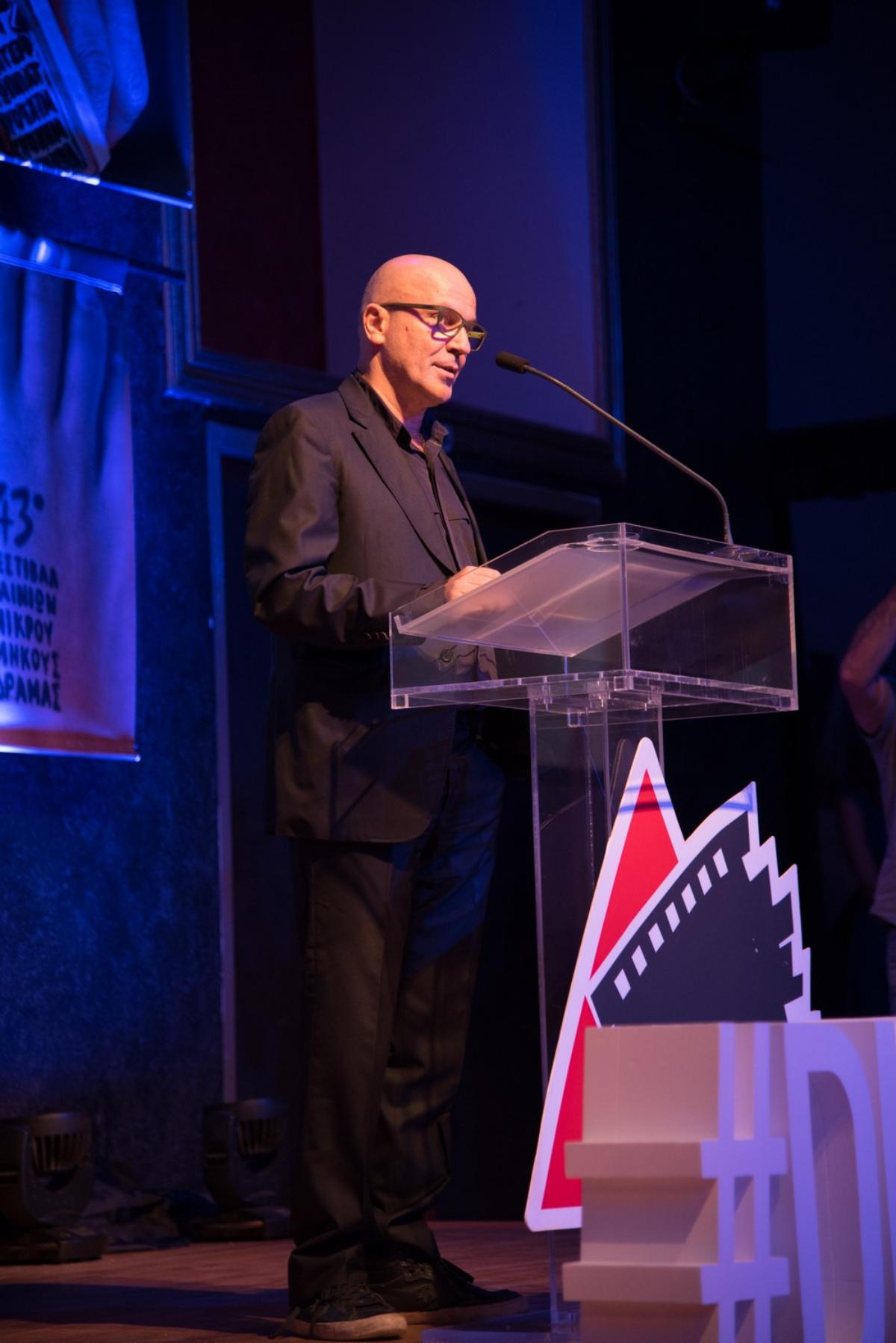 Ο Δήμαρχος Δράμας Χριστόδουλος Μαμσάκος μίλησε για την πόλη του, λέγοντας πως «φωτίζει και φωτίζεται από την λάμψη του σινεμά, καθως το Φεστιβάλ αποτελεί αναπόσπαστο κομμάτι της πολιτιστικής της ταυτότητας» και καλωσόρισε το νέο καλλιτεχνικό διευθυντή με τις διεθνείς επιτυχίες που καλείται να συνεχίσει το έργο του αείμνηστου Αντώνη Παπαδόπουλου που συντρόφευσε το Φεστιβάλ από το 1993. «Αγαπημένε μας Αντώνη θα είσαι πάντα στις ψυχές όλων μας…».
