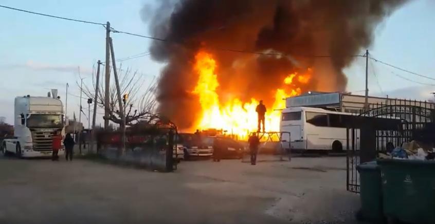 Σύμφωνα με τις μέχρι τώρα πληροφορίες, υπάρχει ανησυχία στις Aρχές, καθώς στο εργοστάσιο φέρεται να υπάρχουν φιάλες προπανίου.