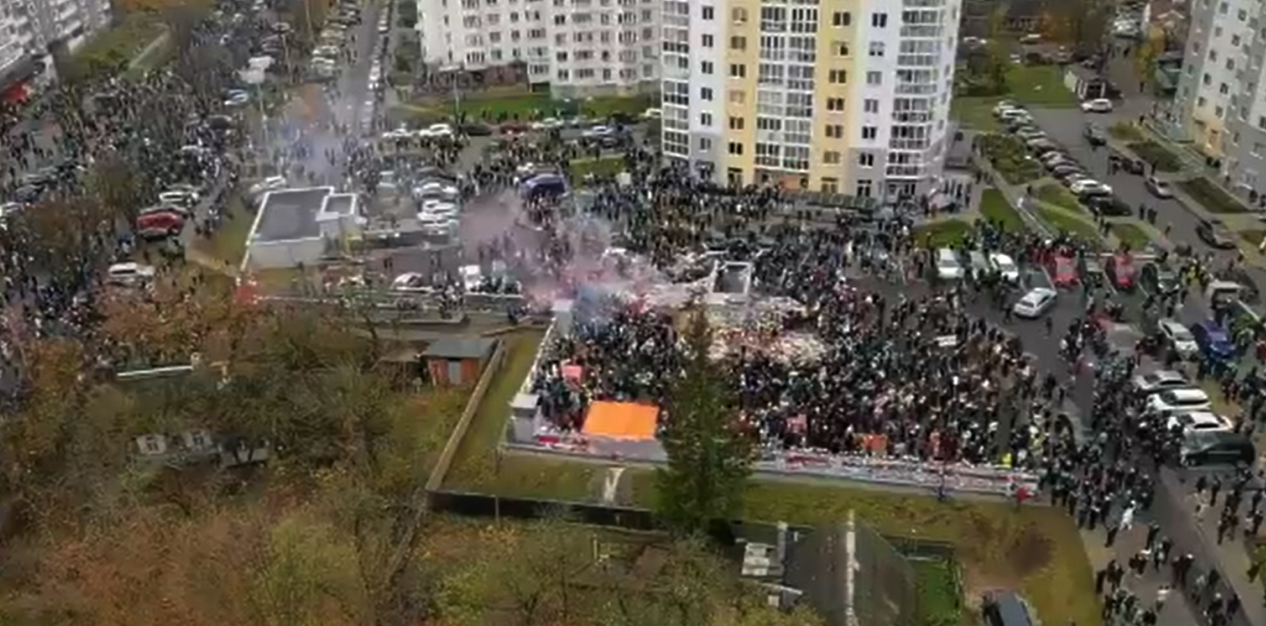 #Belarus Happening right now in #Minsk.A new epicentre of the protest is the neighbourhood,where Raman Bandarenka was beaten and detained.Crowds are gathering here today. In other cities, residents came to people’s memorials as well. Police responded with stun grenades and batons pic.twitter.com/AuUgUMk8vJ