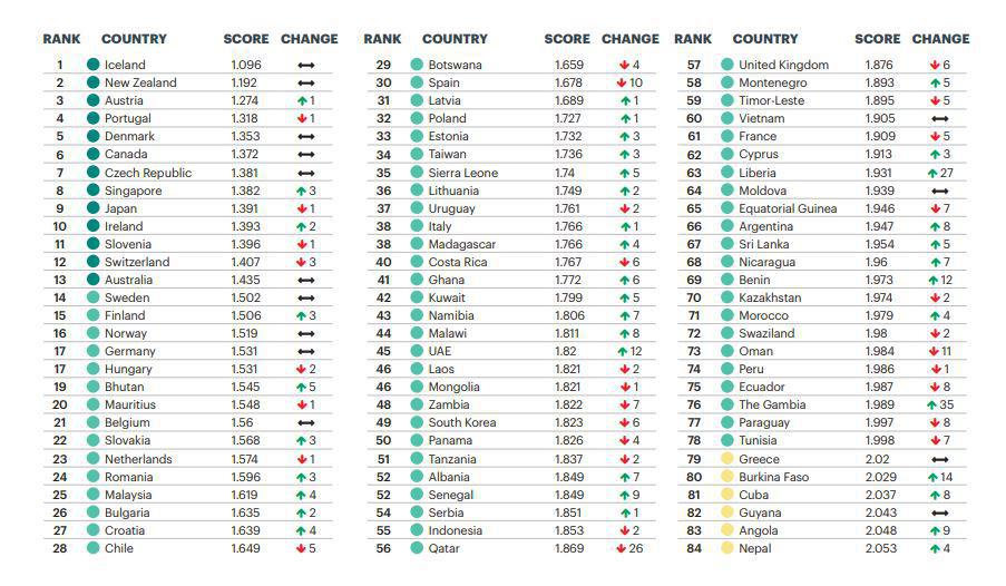 Πρώτη στην κατάταξη των ασφαλών χωρών είναι η Ισλανδία, ενώ ενδιαφέρον παρουσιάζει και η θέση της Ελλάδας σε αυτή την κατάταξη: