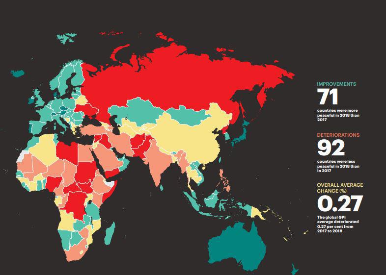 Η Ελλάδα κατατάσσεται στην 79η θέση, παρέχοντας μέτρια επίπεδα ασφάλειας στους πολίτες, «καταφέρνοντας» να ξεπεράσει την Μπουργκίνα Φάσο και έχοντας «νικηθεί» από ένα πλήθος άλλων χωρών.