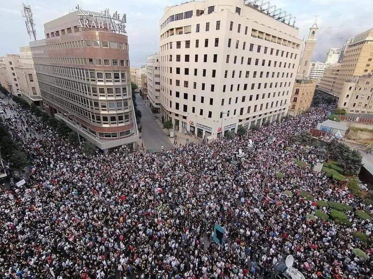 Αργά το απόγευμα, η πλατεία Μαρτύρων, στην καρδιά της Βηρυτού, είχε κατακλυστεί από μια λαοθάλασσα. Κατά χιλιάδες έφταναν οι διαδηλωτές, κρατώντας σημαίες και πλακάτ που ανταγωνίζονταν σε επινοητικότητα. «Επανάσταση!», «Ο λαός θέλει την ανατροπή του καθεστώτος» και «Όλοι σημαίνει όλοι», φώναζαν ρυθμικά οι συγκεντρωμένοι.