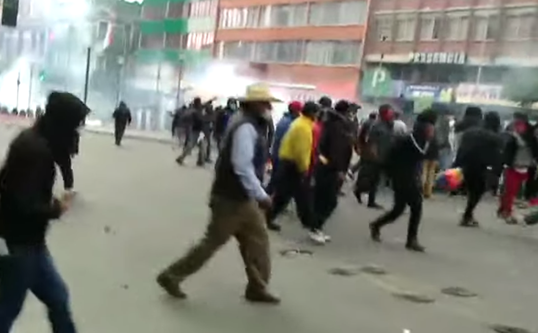Συγκρούσεις ξέσπασαν σήμερα στο κέντρο της πρωτεύουσας Λα Πας μεταξύ διαδηλωτών υποστηρικτών του πρώην αρχηγού του κράτους ‘Εβο Μοράλες και των δυνάμεων της τάξης, κατά την πρώτη ημέρα των καθηκόντων της μεταβατικής προέδρου της Βολιβίας Τζανίν Ανιές, μεταδίδει το Γαλλικό Πρακτορείο. Τα επεισόδια σημειώθηκαν σε απόσταση λίγων τετραγώνων από την έδρα της κυβέρνησης την ώρα που η πρόεδρος ετοιμαζόταν να διορίσει μια νέα στρατιωτική διοίκηση.