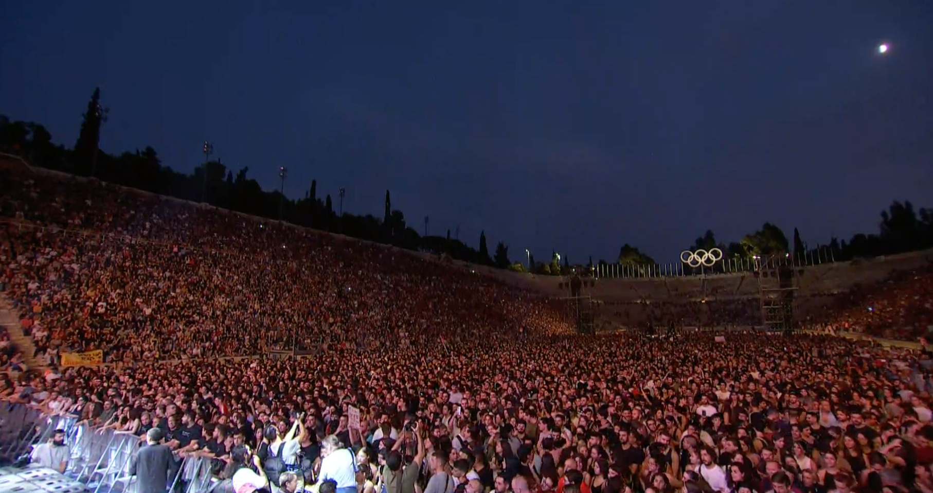 Δείτε ζωντανή εικόνα από το Παναθηναϊκό Στάδιο, όπου μουσικοί και κοινό ενώνουν τις φωνές τους για τα Τέμπη