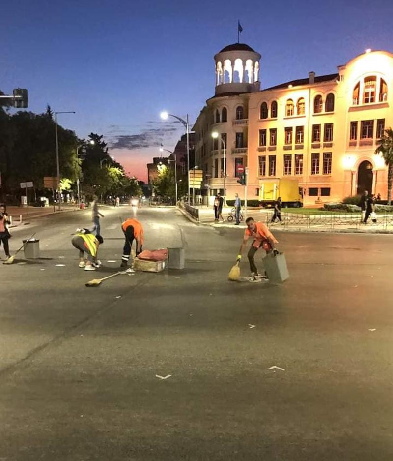 ΕΙΚΟΝΕΣ- Θεσσαλονίκη: Επί ποδός τα συνεργεία καθαρισμού μετά τις χθεσινές κινητοποιήσεις