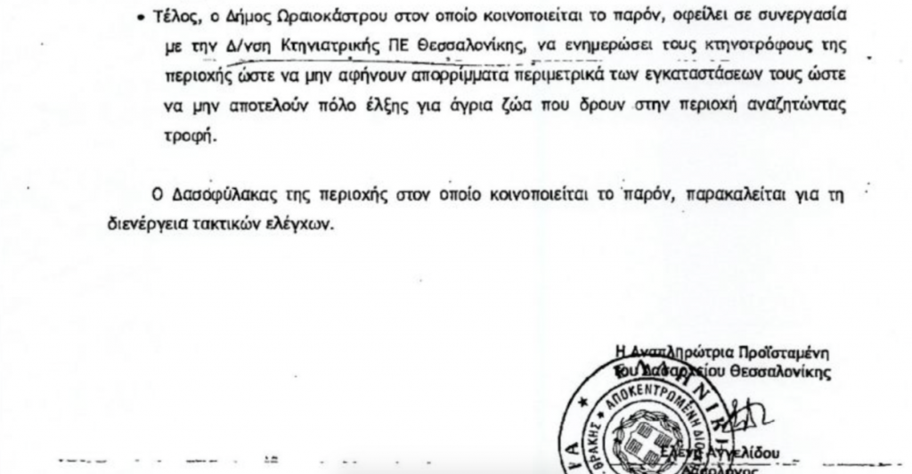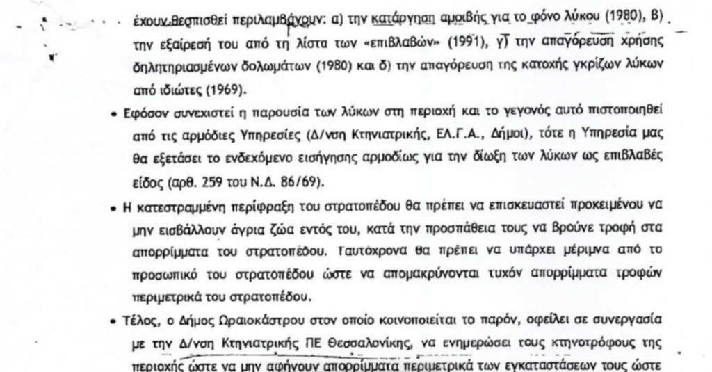 Για εμφάνιση λύκων μέσα στο στρατόπεδο «ΕΠΙΛΑΡΧΟΥ ΠΡΟΚΟΠΙΔΗ ΘΩΜΑ» στον Δρυμό προειδοποιεί τον Δήμο Ωραιοκάστρου με έγγραφό της η Διεύθυνση Δασών της Αποκεντρωμένης Διοίκησης Μακεδονίας Θράκης.