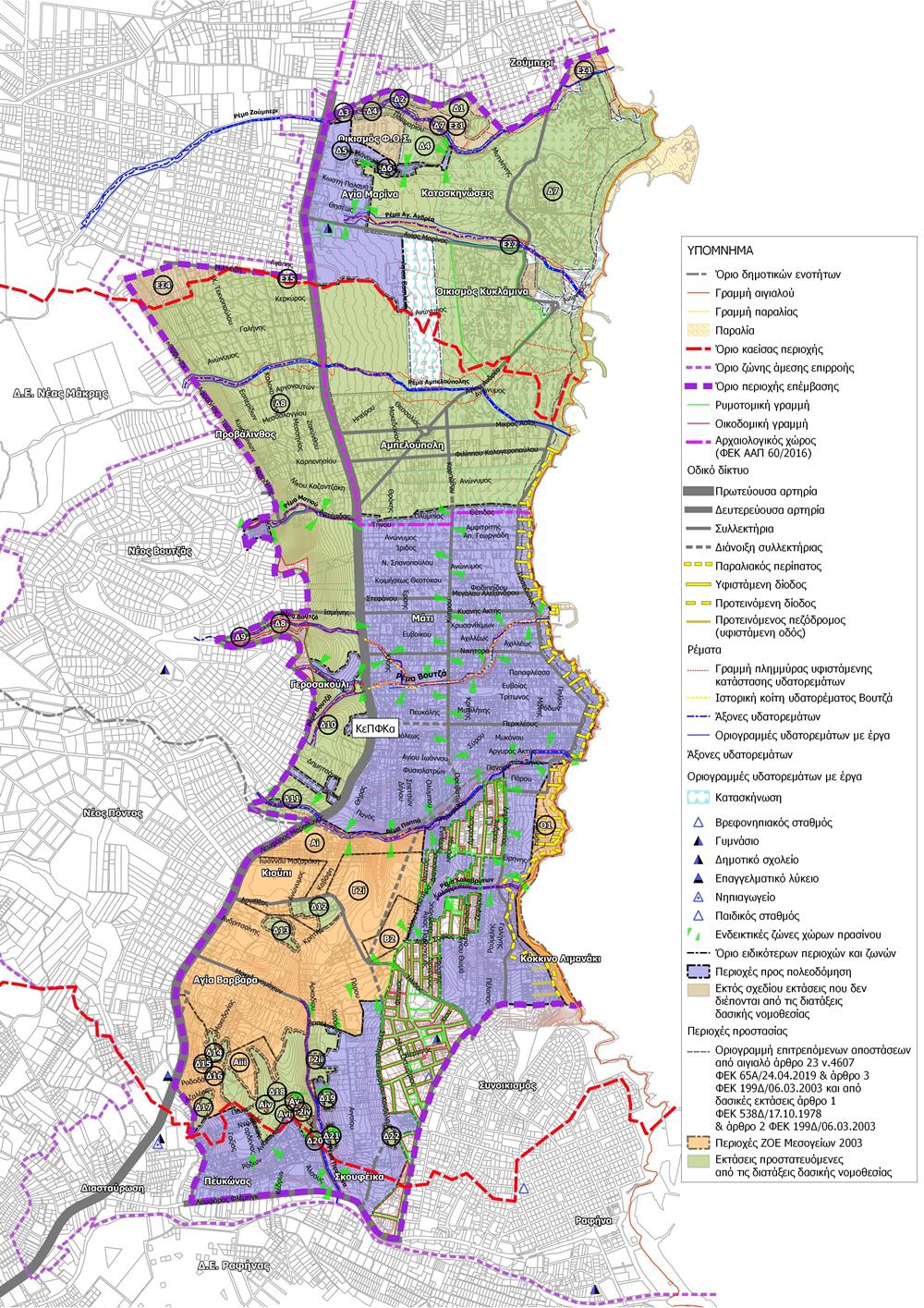 Έτσι, η αναλογία δημόσιου κοινόχρηστου χώρου και πράσινου ως προς τη συνολική επιφάνεια αυξάνεται κατά 21,93% ενώ τα οριοθετημένα ρέματα, αφορούν σε ποσοστό 1,53% της συνολικής έκτασης.
