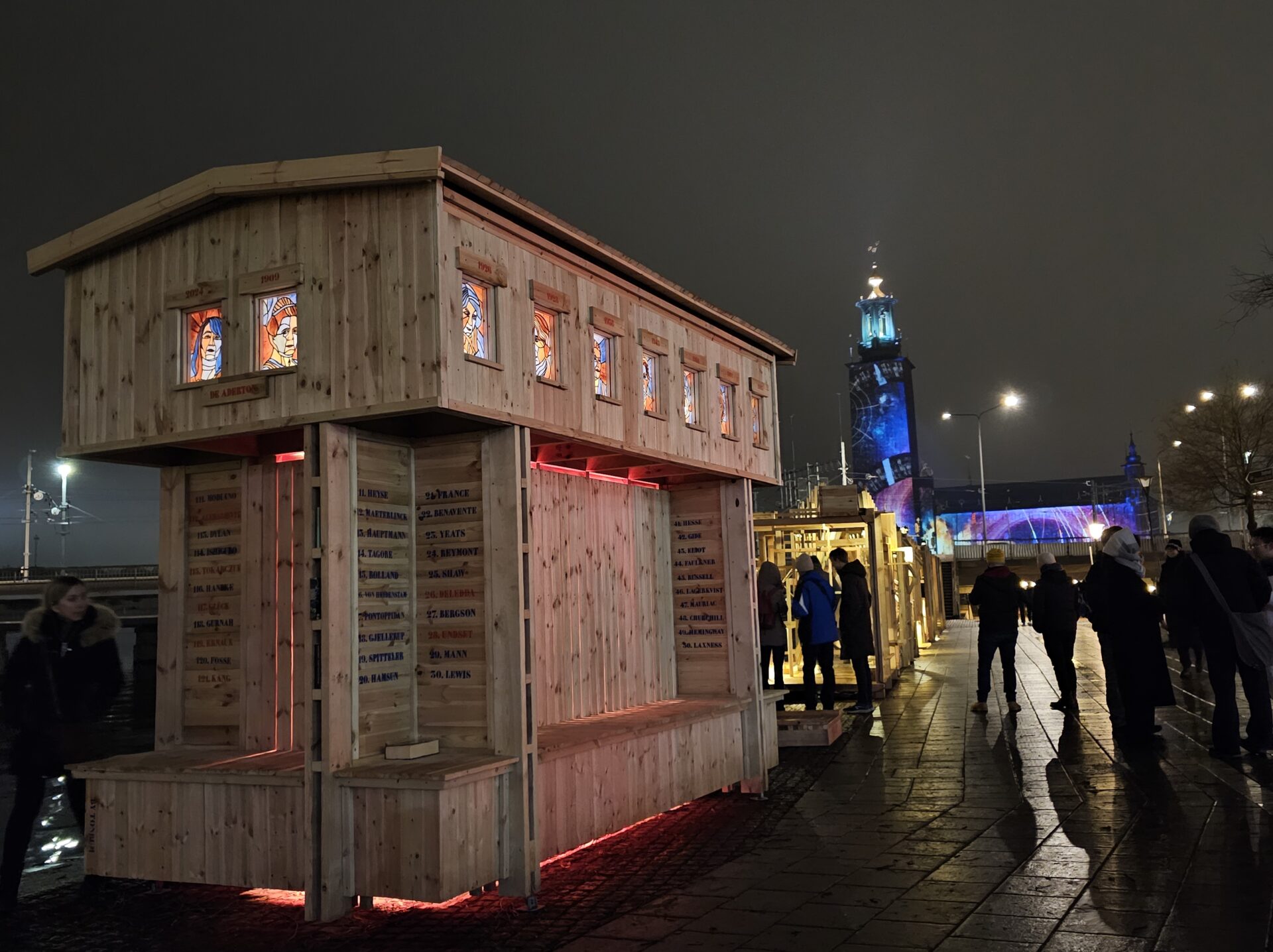 Στις γυναίκες βραβευμένες με Νόμπελ λογοτεχνίας είναι αφιερωμένη και η αρχιτεκτονική φωτιστική εγκατάσταση De Aderton (σημαίνει 18 στα παλαιά σουηδικά). Ο τίτλος αναφέρεται στις δεκαοκτώ γυναίκες που έχουν λάβει το βραβείο μέχρι στιγμής, αλλά παραπέμπει και στα 18 μέλη της Σουηδικής Ακαδημίας, που αποφασίζουν για το Νόμπελ λογοτεχνίας.