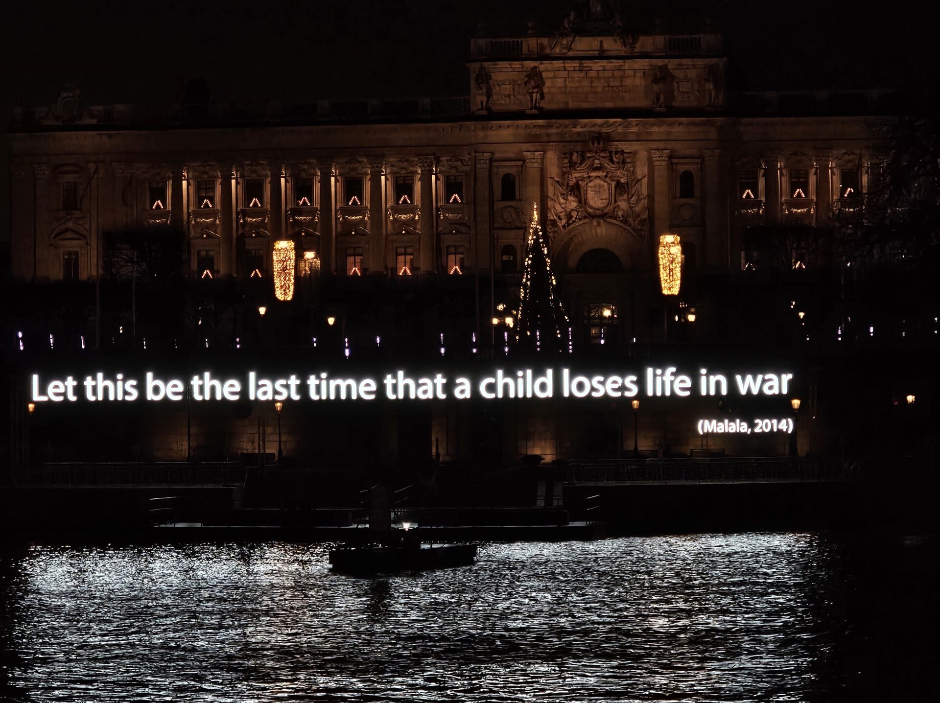 Στο έργο τέχνης Hope η καλλιτέχνης Aleksandra Stratimirović αναδεικνύει το απόσπασμα από τη ομιλία της Yousafzai «Ας είναι αυτή η τελευταία φορά που ένα παιδί χάνει τη ζωή του στον πόλεμο» θέλοντας να στείλει ένα ισχυρό μήνυμα υπενθυμίζοντας το κατά γενική ομολογία σωστό και αληθινό.