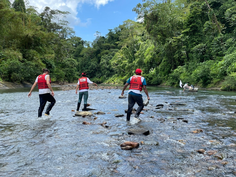 Οι ομάδες των Γιατρών Χωρίς Σύνορα διασχίζουν τον ποταμό Baudó προκειμένου να φτάσουν στις τοπικές κοινότητες που ζουν στις όχθες του. Οι κάτοικοι αντιμετωπίζουν δυσκολίες πρόσβασης σε τροφή αλλά και ιατρική περίθαλψη λόγω του αποκλεισμού τους και της βίας. Κολομβία – Νοέμβριος 2022 ©Santiago Valenzuela / MSF