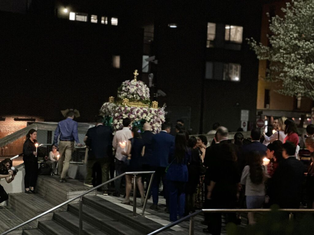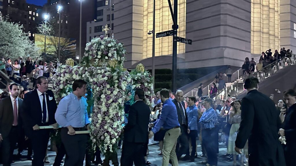 Μάλιστα η περιφορά του Επιταφίου έγινε σε όλην τη νέα πλατεία του Wold Trace Center, στη μνήμη των νεκρών.