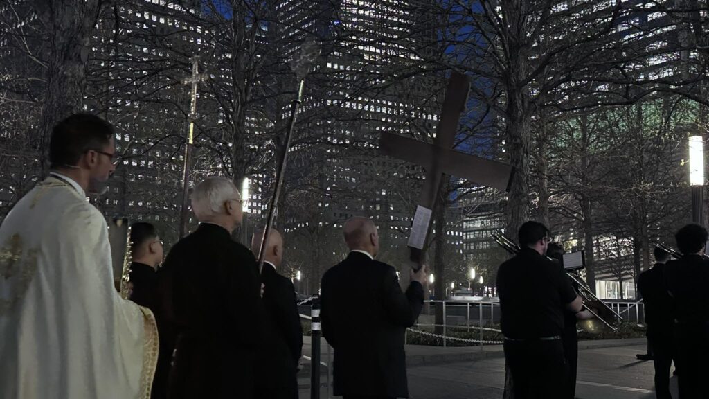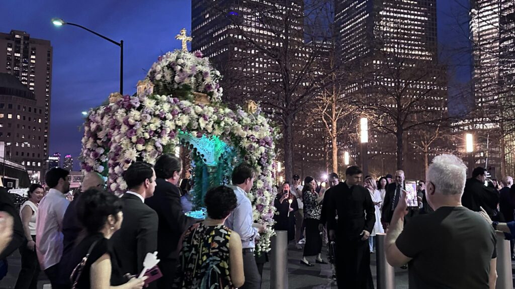 Είκοσι δυο χρόνια μετά η πρώτη Αναστάσιμη λειτουργία στο σημείο Μηδέν, εκεί που ήταν κάποτε οι Δίδυμοι Πύργοι και η ορθόδοξη εκκλησία του Αγίου Νικολάου, τελέστηκε ξανά.