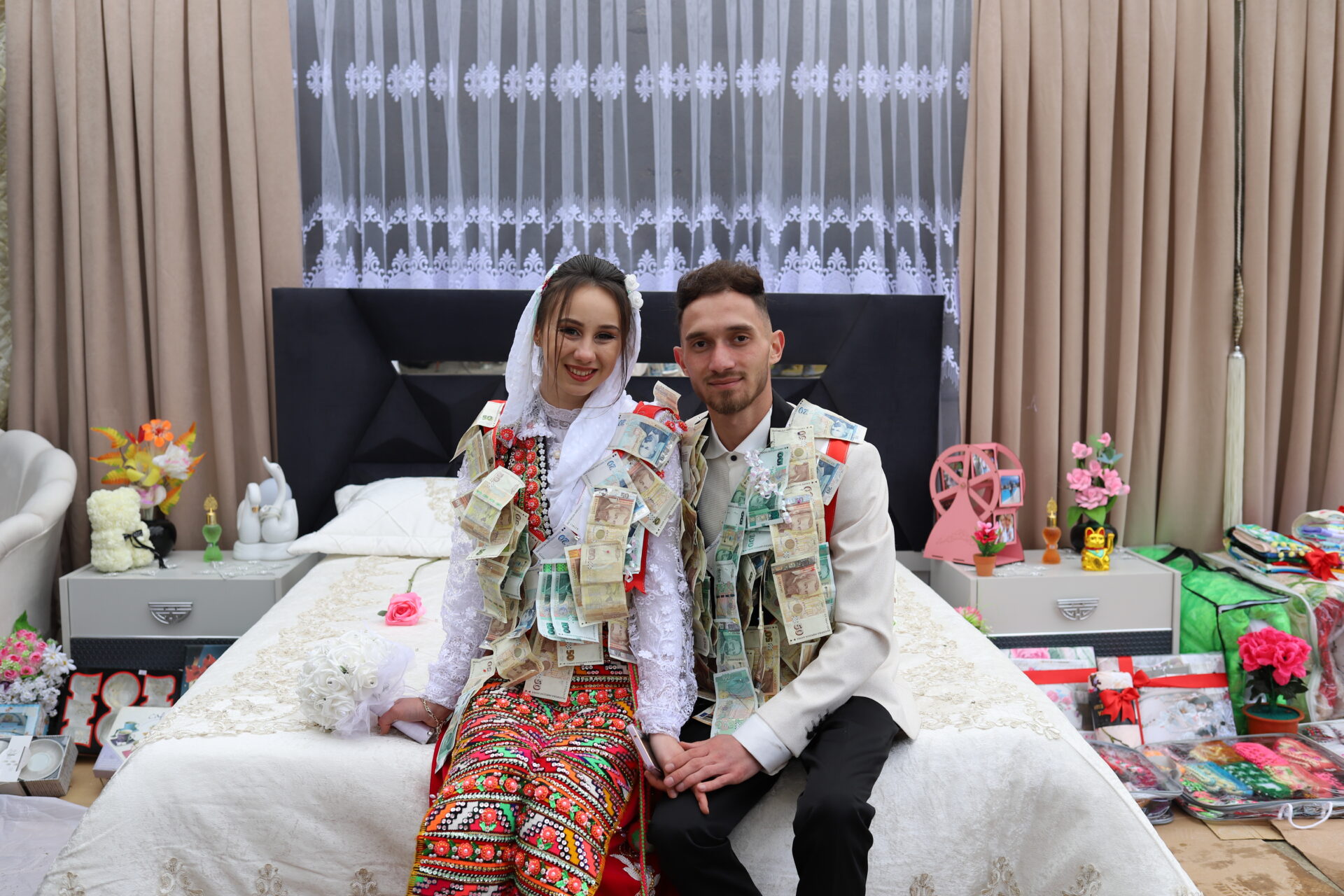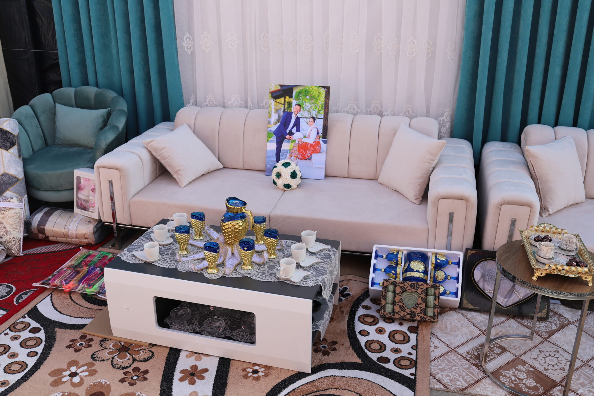 Έπιπλα, κουβέρτες, ηλεκτρικές συσκευές και σερβίτσια, καθώς και καφτάνια, κάλτσες, και χειροποίητες ποδιές, μαζί με θρησκευτικά φυλακτά και σύμβολα του Ισλάμ, συνθέτουν την ιδιότυπη αυτή προίκα που ορίζει η παράδοση για να συντροφεύσει το νέο σπιτικό.