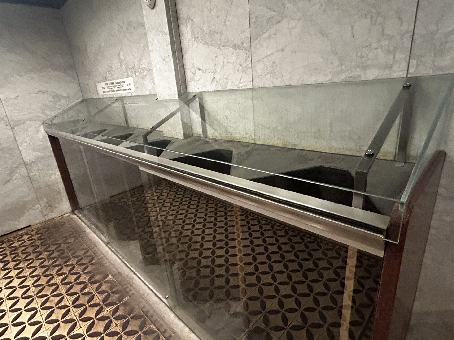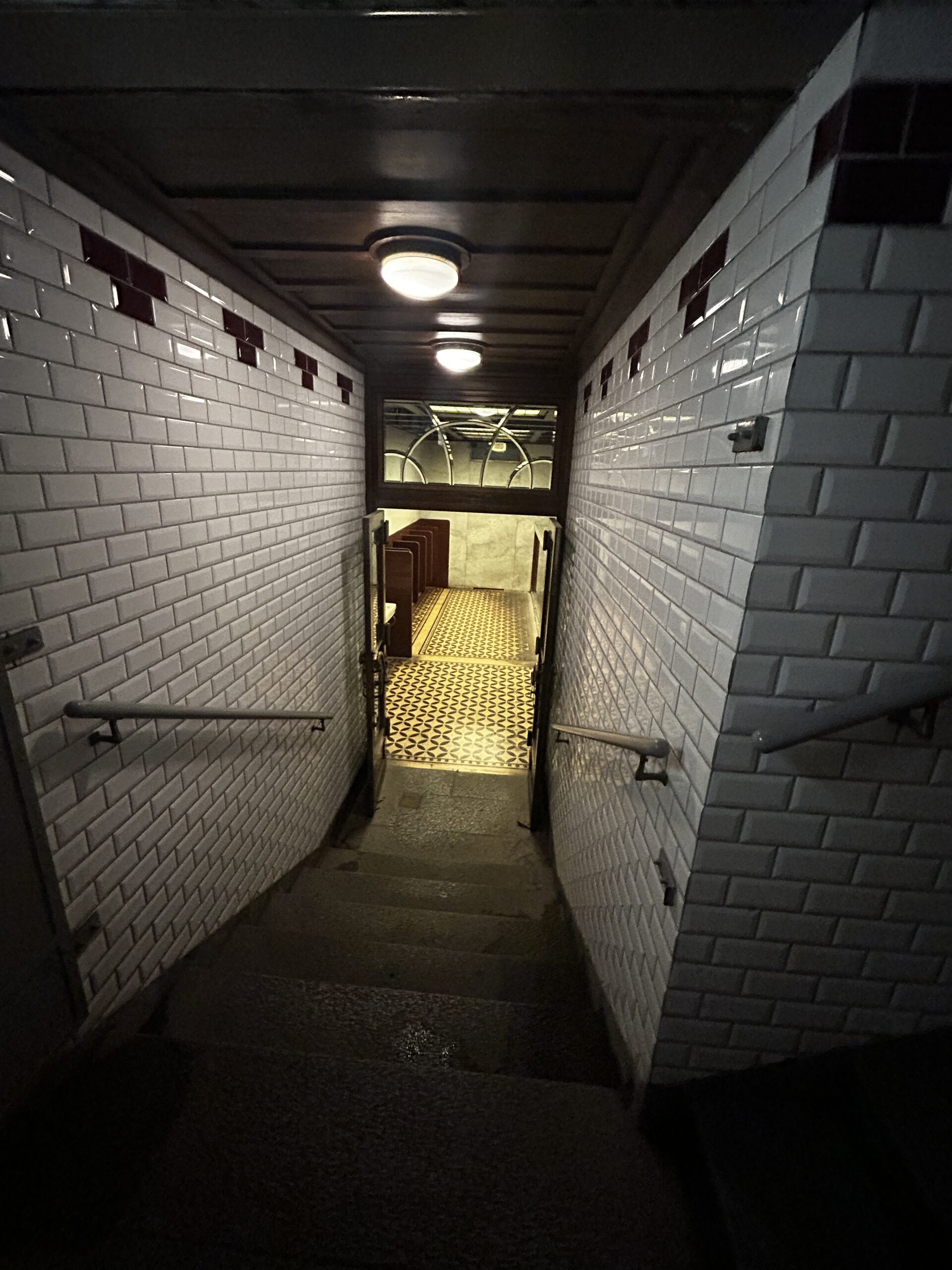 Αν κατέβει κανείς τα σκαλιά μεταφέρεται σε ένα ταξίδι στο χρόνο. Στον τοίχο, κείμενο με το σύστημα απολύμανσης της εποχής που αποτελούσε πατέντα του Beetz.