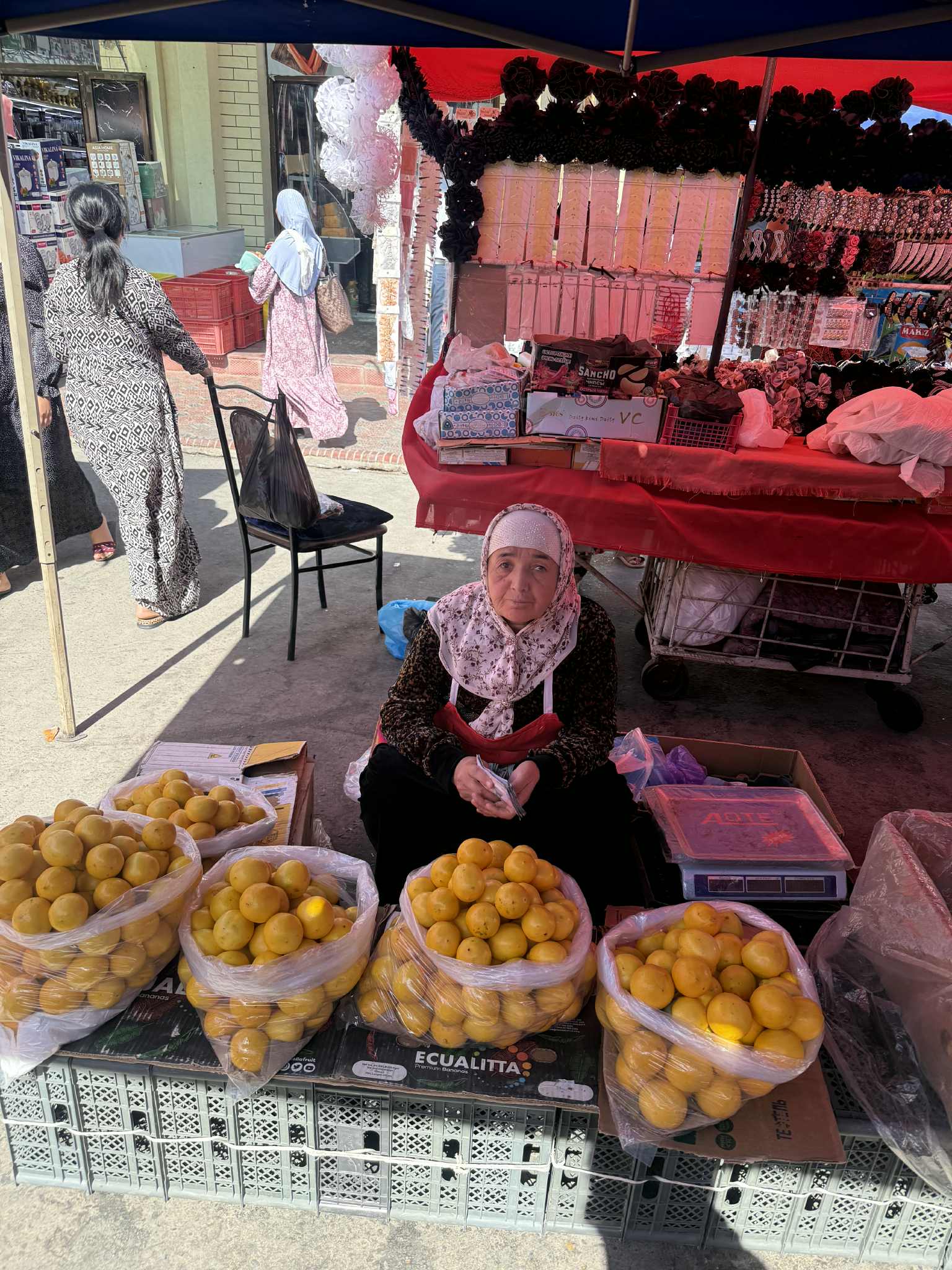 Πλάι στο μαυσωλείο και το τζαμί της Bibi-Khanim και το τζαμί Hazrat Khizir, με την τριπλή αψίδα του γαλάζιου παλίμψηστου που χαρακτηρίζει τα μεγάλα και σπουδαία κτίρια της χώρας σε υποδέχεται σε ένα ταξίδι στα χρώματα και τις αισθήσεις που κερδίζει τον ταξιδιώτη από την πρώτη στιγμή. Μοναδική σου υποχρέωση εδώ να κάνεις παζάρι. Είναι μέρος του παιχνιδιού…