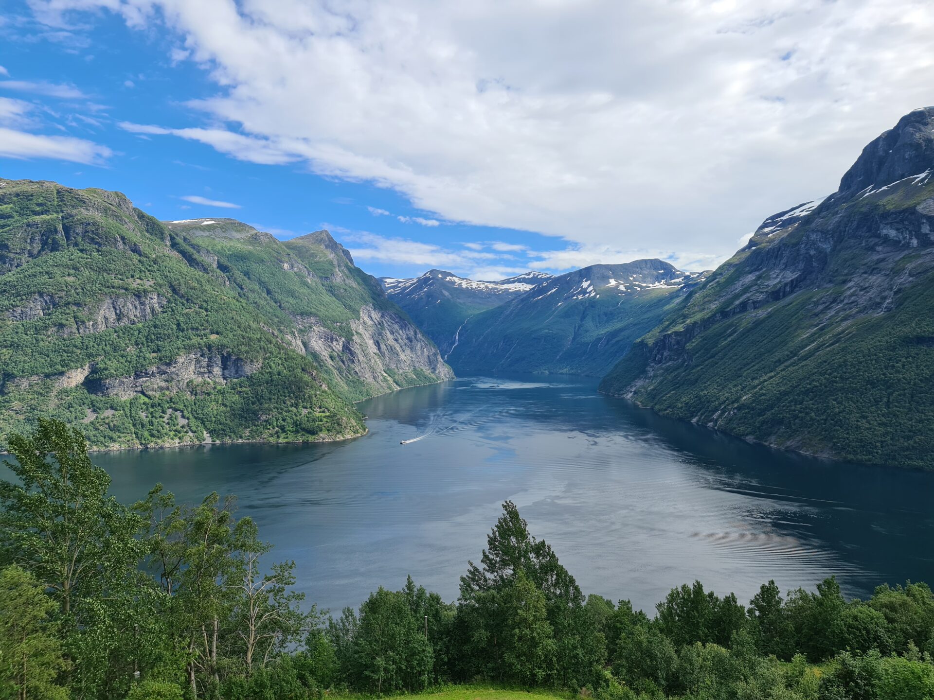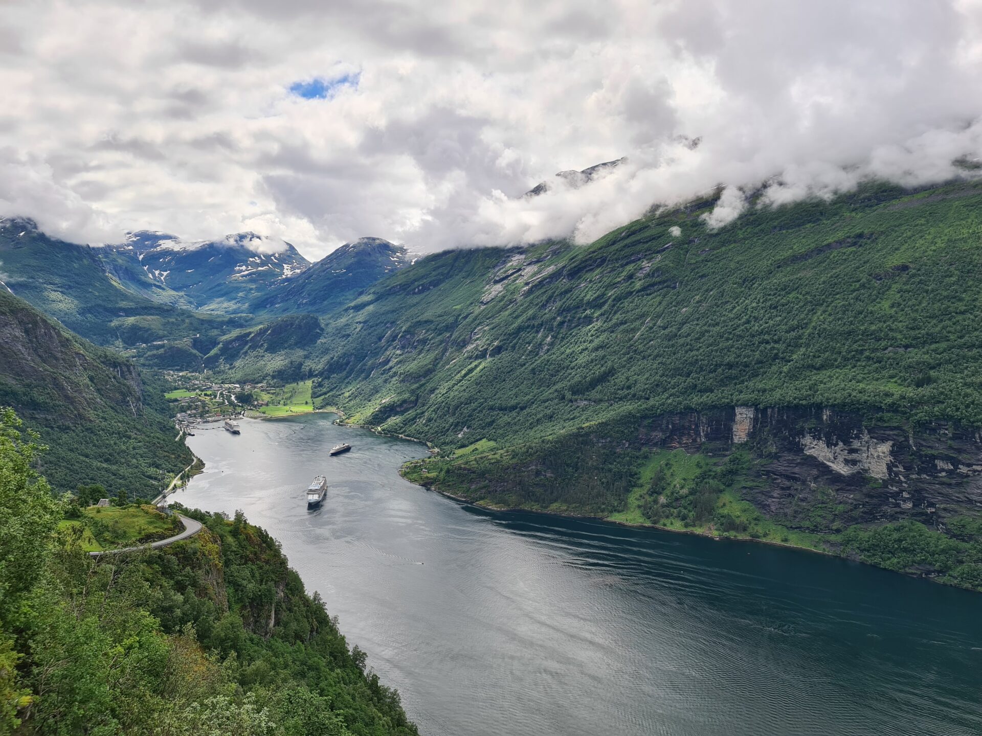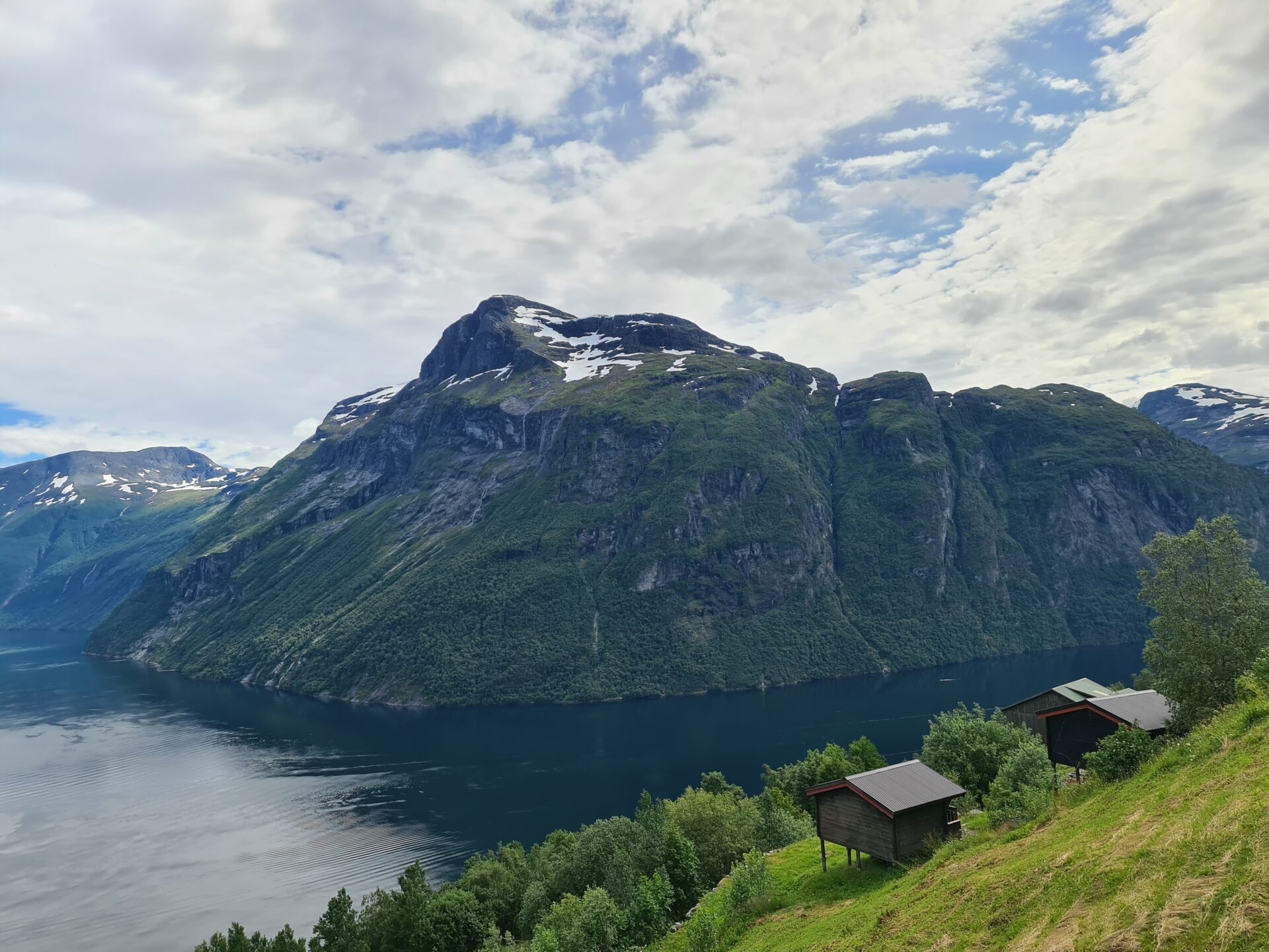 Fjord. Ίσως είναι η μοναδική Νορβηγική λέξη που ξέρεις και η οποία χρησιμοποιείται παγκοσμίως. Ένα φιόρδ είναι μια μακριά, στενή, βαθιά λωρίδα θάλασσας, που μπαίνει για πολλά χιλιόμετρα μέσα στην στεριά με απότομες πλαγιές και εντυπωσιακό ορεινό τοπίο. Τα φιόρδ σχηματίστηκαν από τους παγετώνες. Η Νορβηγία έχει πάνω από 1000 φιόρδ με το μεγαλύτερο να έχει μήκος 200 χιλιόμετρα. Φυσικά είναι γνωστή παγκοσμίως για τα φιόρδ που έχει και την ιδιαίτερη ομορφιά τους. Geiranger fjord. Μετά από μια πολύ όμορφη αλπική διαδρομή με συνεχείς στροφές, με χιόνι και κρύο και αφού διασχίσαμε την κορυφή Dalsnibba, λίγο πιο κάτω σταματάς για να δεις το φιόρδ. Ίσως είναι το πιο όμορφο παγκόσμιο φιόρδ και το μοναδικό που είναι στον κατάλογο Παγκόσμιας Κληρονομιάς της Unesco. Είναι πολύ στενό με απόκρημνες πλαγιές ύψους μέχρι 1500 μέτρα που βυθίζονται μέσα στο νερό για άλλα 500 μέτρα. Στο τελείωμα του είναι το μικρό τουριστικό χωριό Geiranger και εδώ μπορείς να μείνεις.