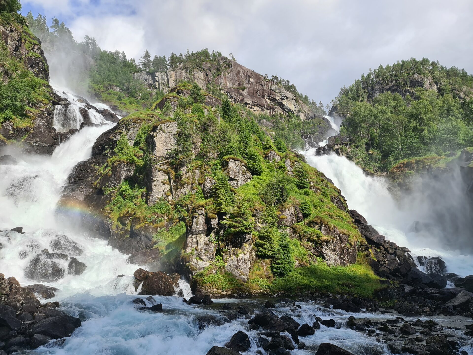Η περιοχή στο Geiranger fjord είναι γεμάτοι καταρράκτες. Πολύ κοντά σε έναν δυνατό καταρράκτη – σπάνιο να το πετύχεις χωρίς να κινδυνεύεις – κοιμηθήκαμε το βράδυ. Αξέχαστη εμπειρία ζωής. Όλο το βράδυ μας φόρτιζε με σύννεφα από αρνητικά ιόντα οξυγόνου και το πρωί ήμασταν γεμάτοι με μια πρωτόγνωρα βαθιά ενέργεια. Αντίθετα από την λέξη, τα επιβλαβή είναι τα θετικά ιόντα, που είναι γεμάτες οι πόλεις μας και που μας οξειδώνουν ανεπανόρθωτα και μας γερνάνε.
