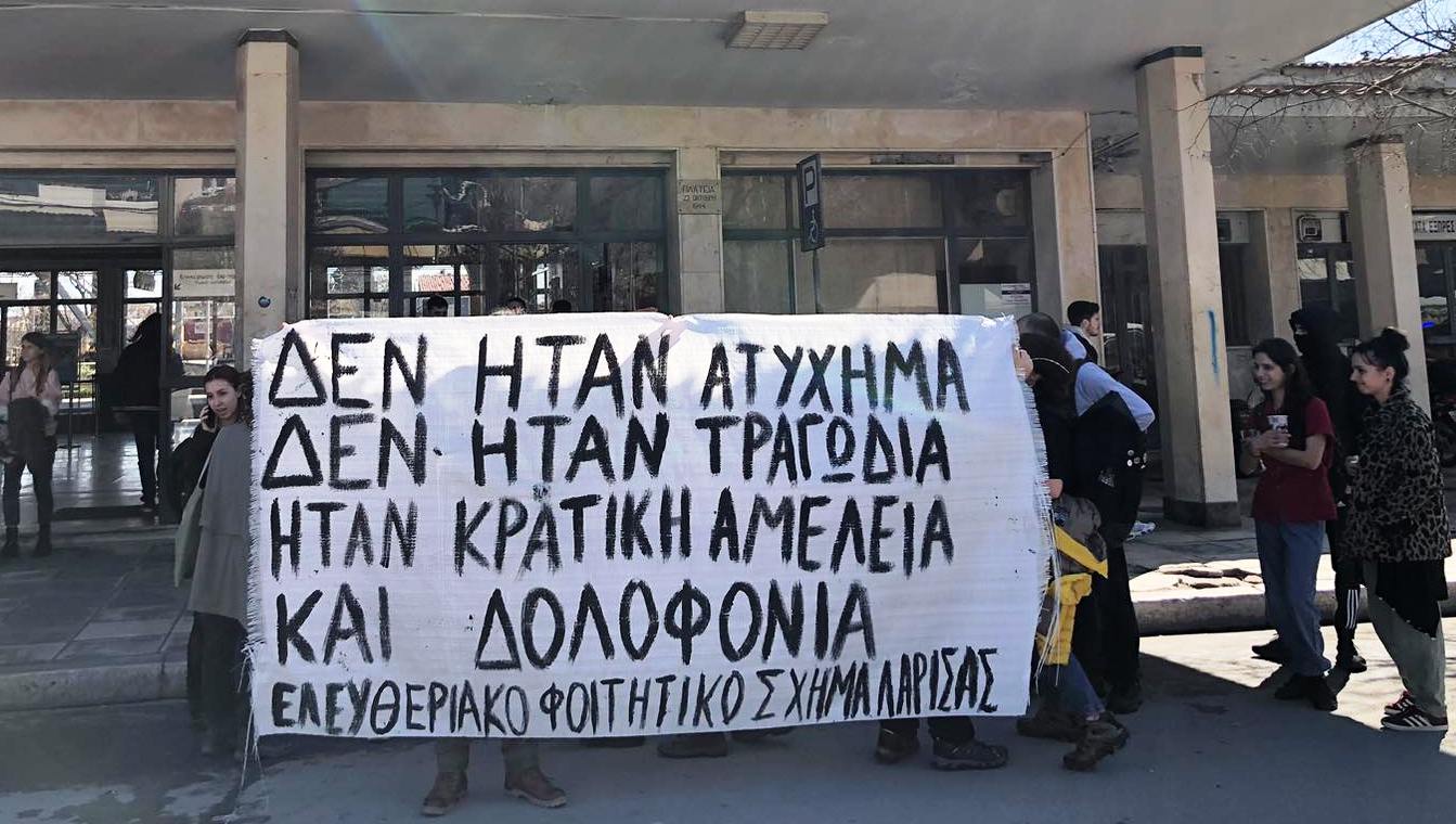 Με το σύνθημα «Στερέψανε τα δάκρυα και γίνανε οργή», μαθητές, καθηγητές και γονείς στη Λάρισα πραγματοποίησαν την Παρασκευή μεγάλη συγκέντρωση διαμαρτυρίας για τη μεγάλη τραγωδία με τη σύγκρουση τρένων στα Τέμπη, που έχει κοστίσει τη ζωή σε 57 ανθρώπους, κυρίως νεαρής ηλικίας.