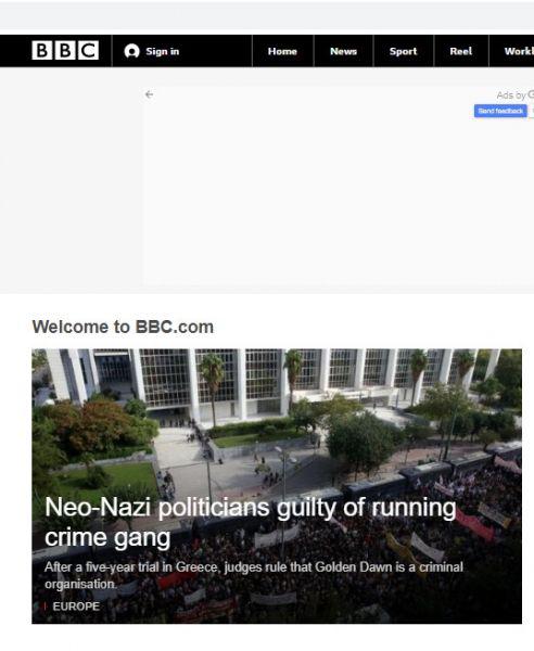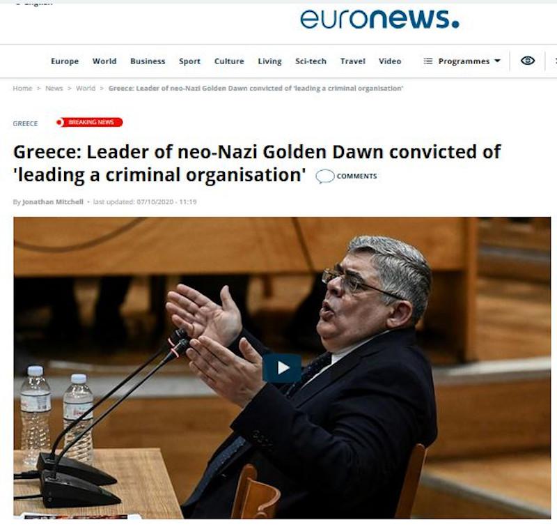 Ξένα Μέσα Μαζικής Ενημέρωσης μεταφέρουν την είδηση ότι τα ηγετικά στελέχη του νεοναζιστικού κόμματος κρίθηκαν ένοχα για σύσταση εγκληματικής οργάνωσης.