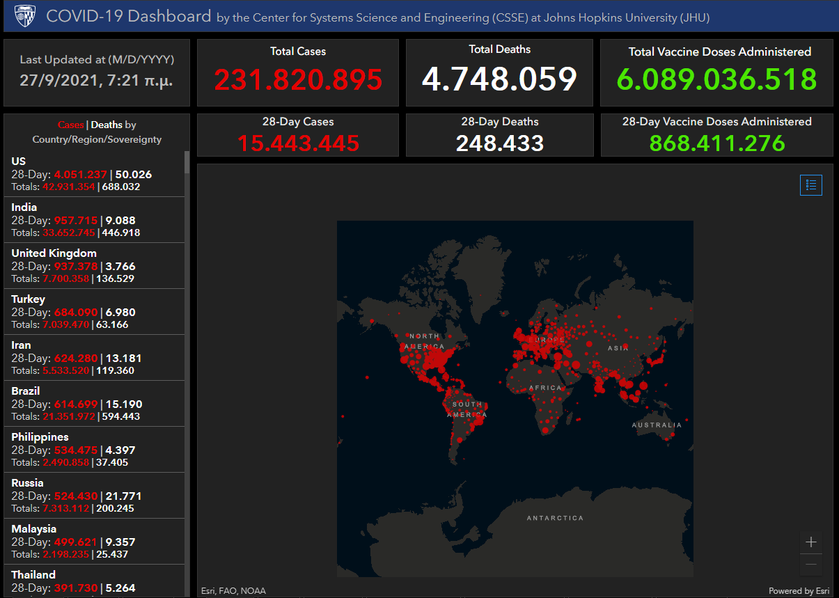 Η εικόνα της πανδημίας αυτή την ώρα στον κόσμο.