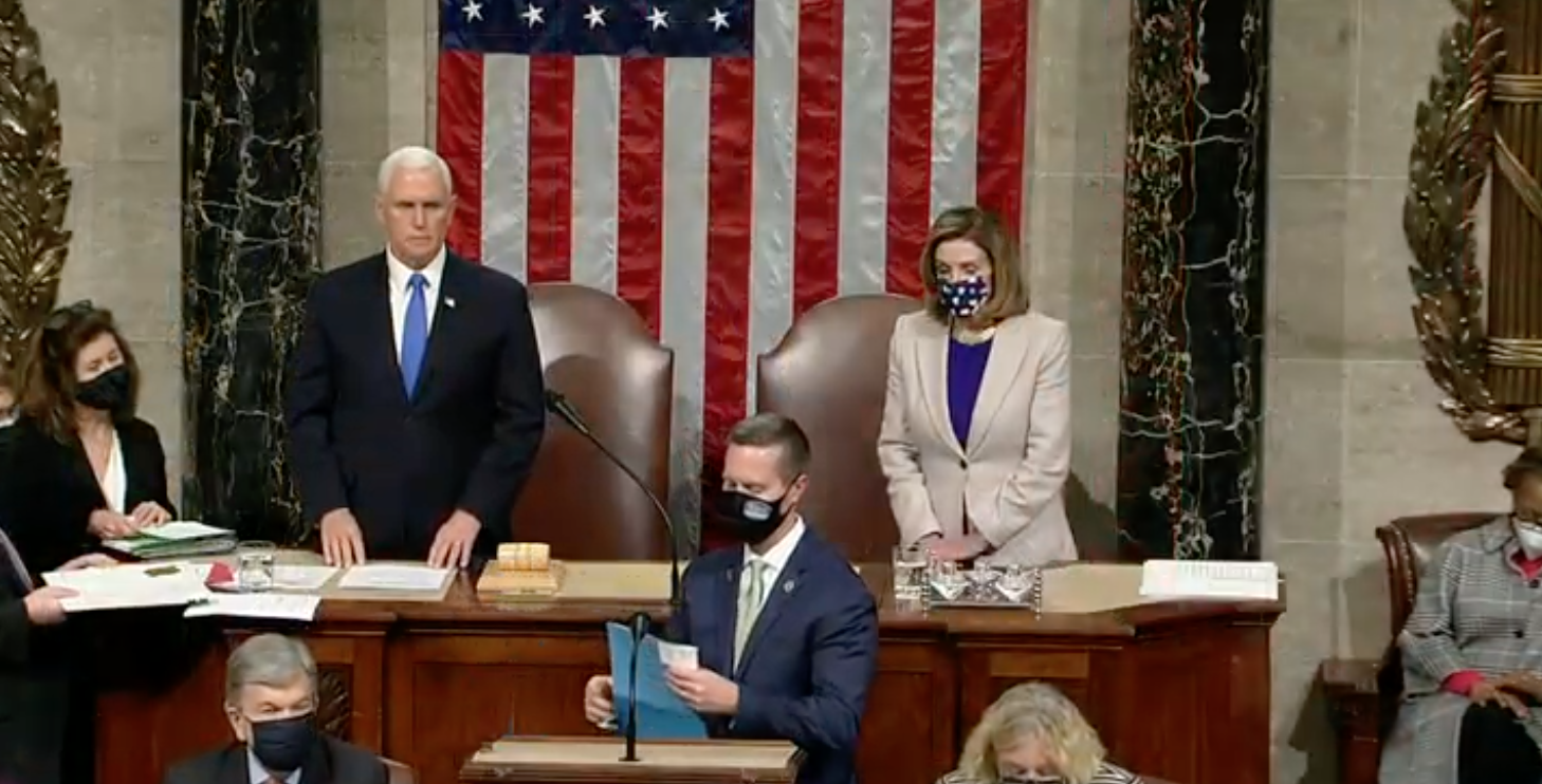 «Ακόμη και μετά τη βία και τον βανδαλισμό άνευ προηγουμένου σε αυτό το Καπιτώλιο, οι εκλεγμένοι αντιπρόσωποι του λαού των ΗΠΑ συναντώνται ξανά, την ίδια ημέρα, για να υπερασπιστούν το Σύνταγμα», είπε ο Πενς.