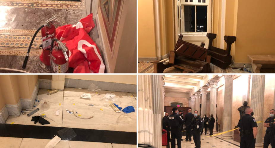 Υποστηρικτές του Τραμπ εισέβαλαν στις αίθουσες του Κογκρέσου καθώς ρεπουμπλικάνοι σύμμαχοι του Τραμπ εξέθεταν τις αντιρρήσεις τους σχετικά με τις προεδρικές εκλογές του 2020 που κέρδισε ο εκλεγμένος πρόεδρος Τζο Μπάιντεν.