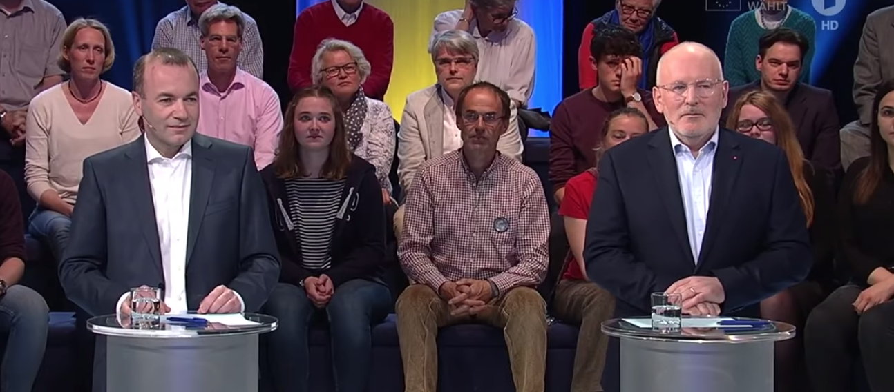 Περίπου τρεις εβδομάδες πριν από τις ευρωεκλογές , ο γερμανός επικεφαλής του ψηφοδελτίου του Ευρωπαϊκού Λαϊκού Κόμματος Μάνφρεντ Βέμπερ αντιμετώπισε τον ολλανδό επικεφαλής της λίστας των Σοσιαλιστών και Δημοκρατών Φρανς Τίμερμανς στην «εκλογική αρένα» του πρώτου καναλιού της γερμανικής δημόσιας τηλεόρασης, του ARD.