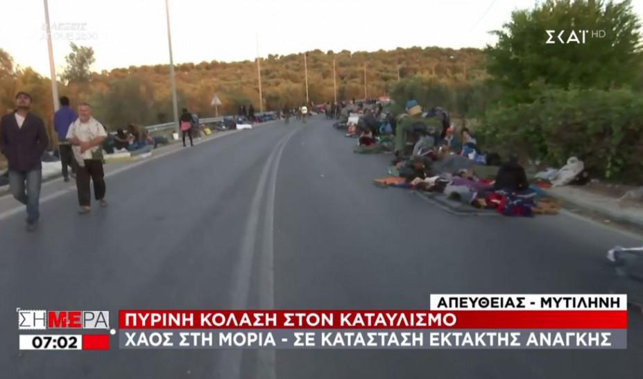 Από την Τετάρτη 9 Σεπτεμβρίου η ευρύτερη περιοχή γύρω από τη Μόρια στη Λέσβο έχει μετατραπεί σε έναν υπαίθριο, άτυπο καταυλισμό. Μάλιστα, οι εικόνες που ήρθαν νωρίς το πρωί της Πέμπτης στη δημοσιότητα, με άτομα κάθε ηλικίας να έχουν στρώσει στον δρόμο κουβέρτες και ό,τι άλλο βρήκαν, προκειμένου να κοιμηθούν, προκαλούν θλίψη.