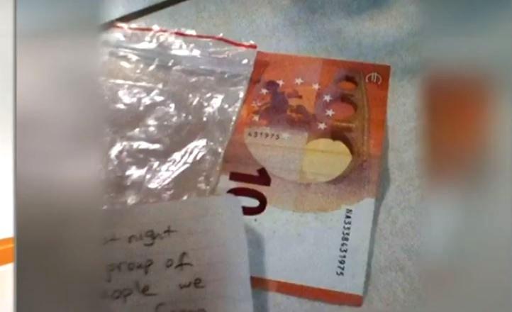 «Πέρασαν μετανάστες μετά τις 2 και κρυώνανε και πήρανε ξύλα. Και άφησαν αυτό το χαρτάκι με τα δέκα ευρώ», είπε ο κ. Καζαντζής, δηλώνοντας έκπληκτος με την κίνηση.