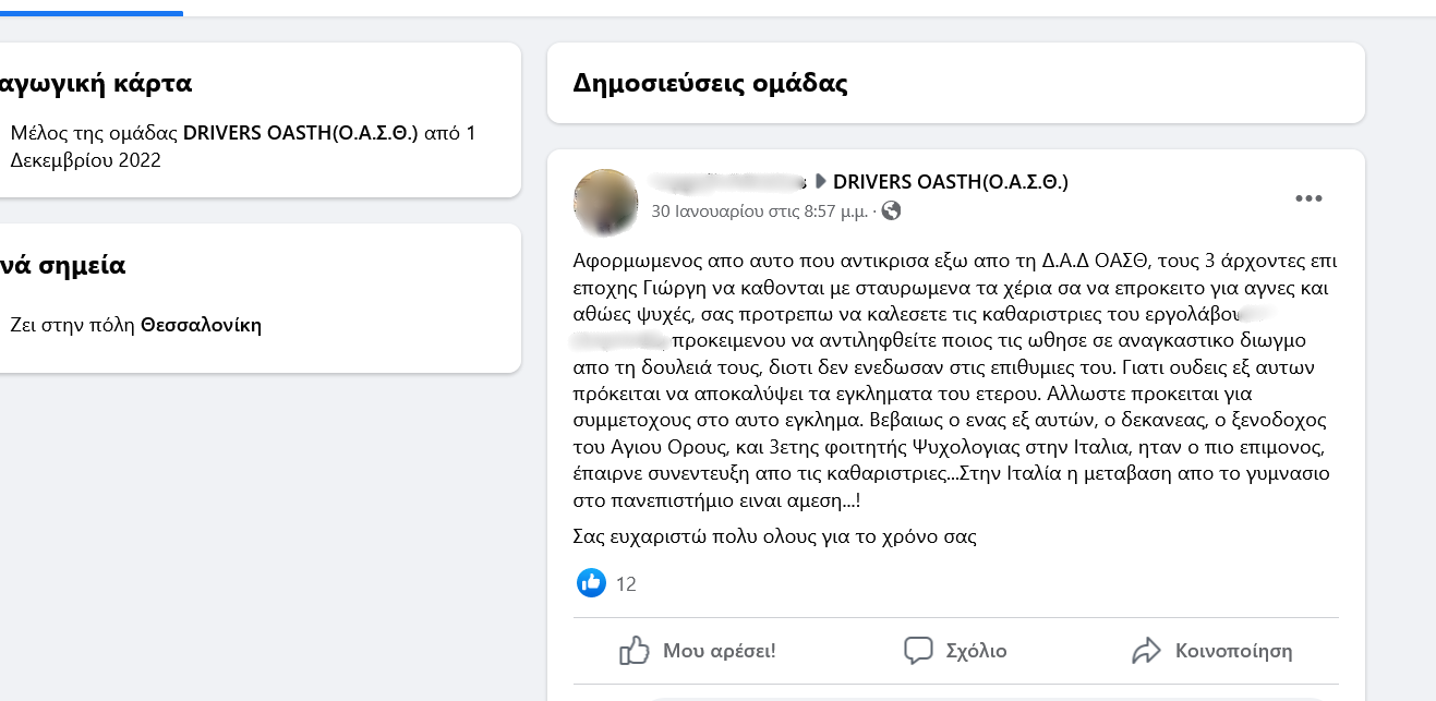 Μάλιστα κάποια γνωστά στελέχη του ΟΑΣΘ, που διετέλεσαν και σε θέσεις ευθύνης, σχολιάζουν το θέμα και στο διαδίκτυο, αφήνοντας έμμεσα αιχμές για συγκεκριμένα πρόσωπα χωρίς όμως να τα κατονομάζουν. Μιλούν για συνεντεύξεις και διωγμό καθαριστριών που “δεν ενέδωσαν”.