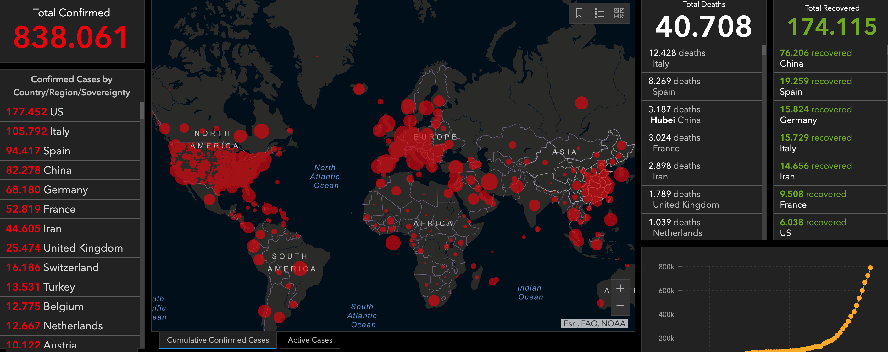 Ξεπέρασαν τις 40.000 οι θάνατοι σε όλον τον κόσμο, πάνω από 800.000 τα κρούσματα