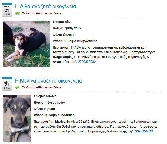 Τα αδέσποτα ζώα που περιλαμβάνονται στον κατάλογο είναι εμβολιασμένα, τσιπαρισμένα, στειρωμένα με πιστοποιητικό υιοθεσίας.