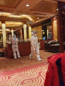 Όταν προσγειωθήκαμε, εργάτες με κοστούμια hazmat περίμεναν στον διάδρομο για να ψεκάσουν τις αποσκευές μας με απολυμαντικό τη στιγμή που τις ξεφόρτωναν από το αεροπλάνο.