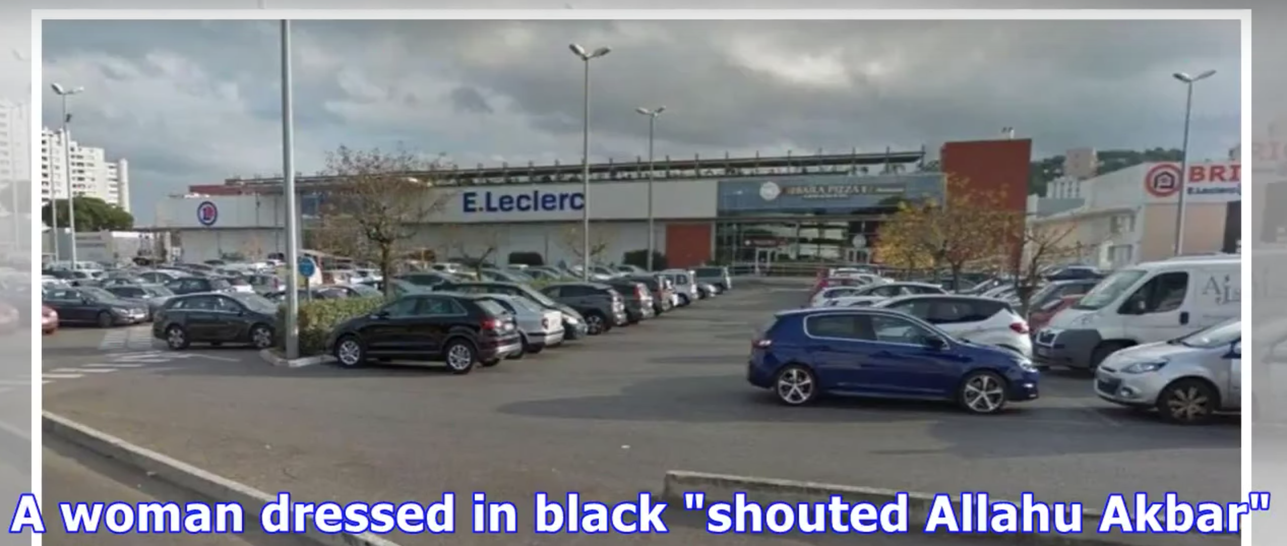 Σήμερα Κυριακή, γύρω στις 10.30 το πρωί, η 24χρονη γυναίκα, που φώναζε «Αλλάχου Άκμπαρ» τραυμάτισε με κοπίδι έναν πελάτη που περίμενε στο ταμείο ενός σούπερ μάρκετ στο Λα Σεν σιρ Μερ, κοντά στην Τουλόν, όπως αφηγήθηκαν αυτόπτες μάρτυρες.