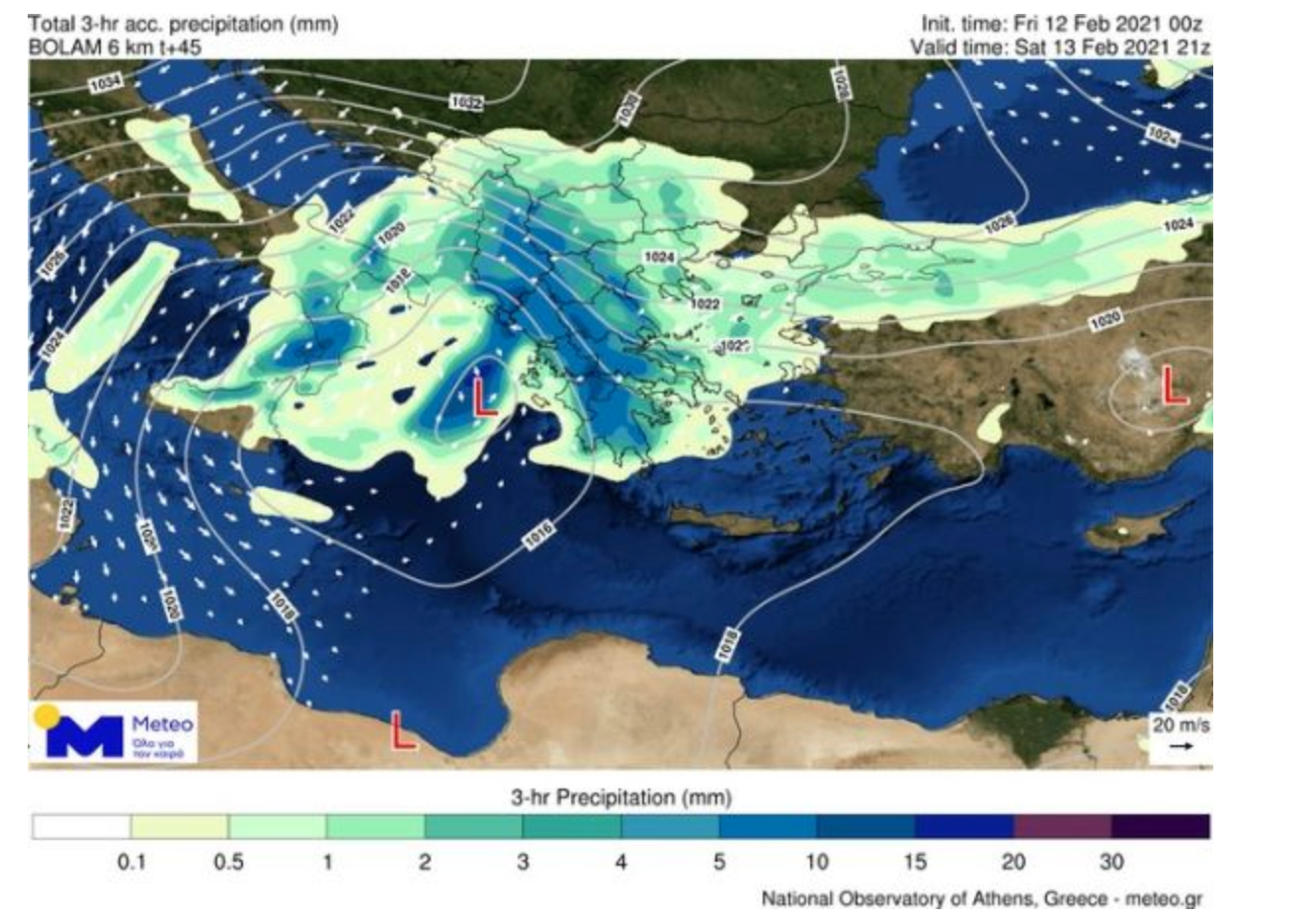- Πυκνές χιονοπτώσεις αρχικά στα ορεινά και ημιορεινά και βαθμιαία σε χαμηλά υψόμετρα της Βόρειας και Κεντρικής Ελλάδας