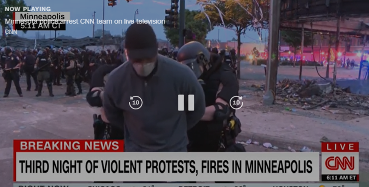 «Ένας ρεπόρτερ του CNN και η ομάδα παραγωγής του συνελήφθησαν σήμερα το πρωί στην Μινεάπολη επειδή έκαναν τη δουλειά τους, παρά την ταυτοποίησή τους – μια σαφή παραβίαση των δικαιωμάτων τους της Πρώτης Τροπολογίας. Οι αρχές στη Μινεσότα, συμπεριλαμβανομένου του κυβερνήτη, πρέπει να απελευθερώσουν αμέσως τους τρεις εργαζομένους του CNN», ανέφερε το αμερικανικό τηλεοπτικό δίκτυο σε ανάρτηση στο Twitter πριν τα μέλη του τηλεοπτικού συνεργείου αφεθούν ελεύθεροι.