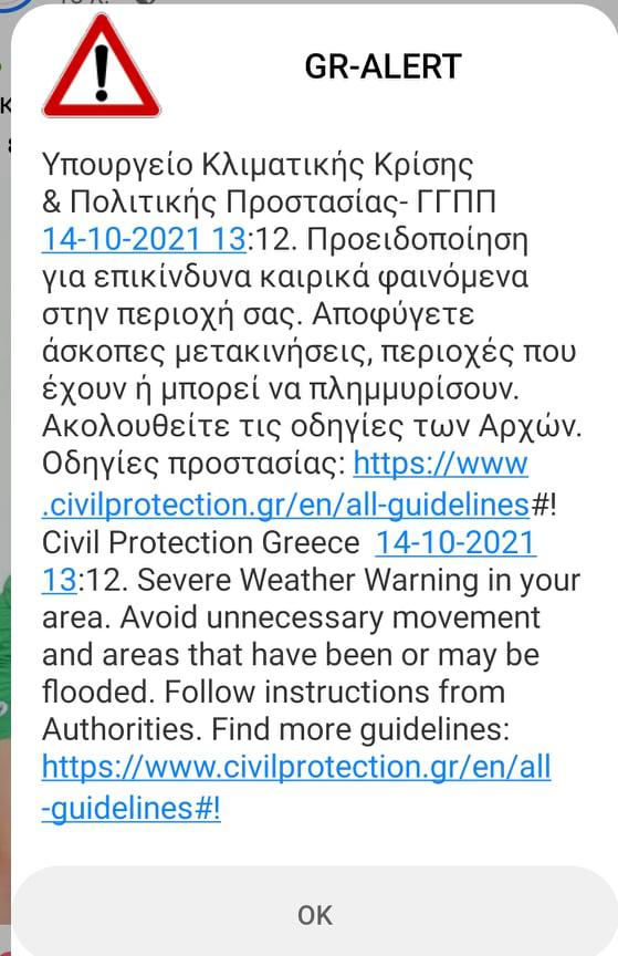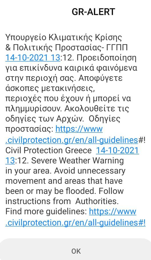 Πριν λίγο οι πολίτες της Θεσσαλονίκης έλαβαν μήνυμα από το 112 με τις σχετικές οδηγίες για την αντιμετώπιση της κακοκαιρίας.