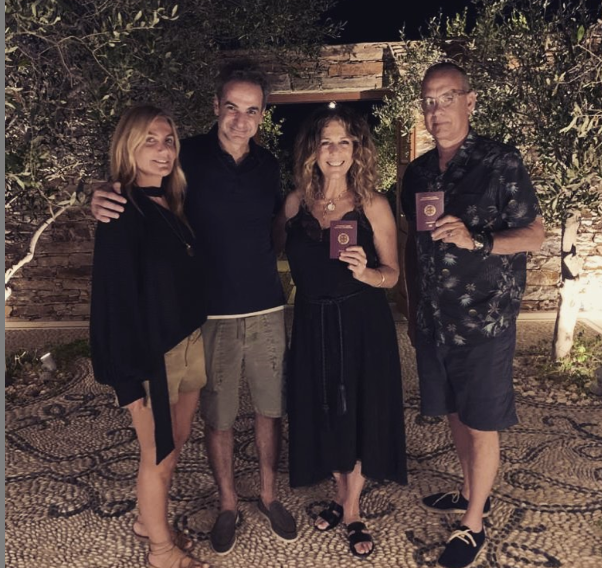 Ο Μητσοτάκης ανέβασε φωτογραφία με τον Τομ Χανκς στην Αντίπάρο