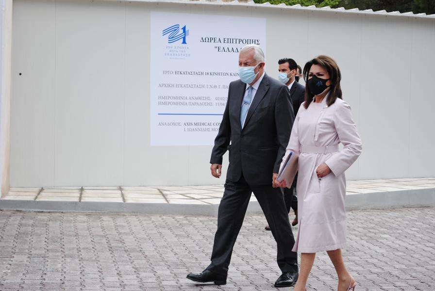 Η κ. Αγγελοπούλου συνοδευόταν από τον Εκτελεστικό Γενικό Συντονιστή της Επιτροπής «Ελλάδα 2021», Μάρτων Σίμιτσεκ. Στις δηλώσεις της τόνισε ότι οι 18 κινητές κλίνες ΜΕΘ που δώρισε η Επιτροπή στο Εθνικό Σύστημα Υγείας είναι «πλήρως λειτουργικές σε εξοπλισμό και αναλώσιμα», ενώ «κατασκευάστηκαν και παραδίδονται σε δύο μόλις μήνες από την ανακοίνωσή της δωρεάς».