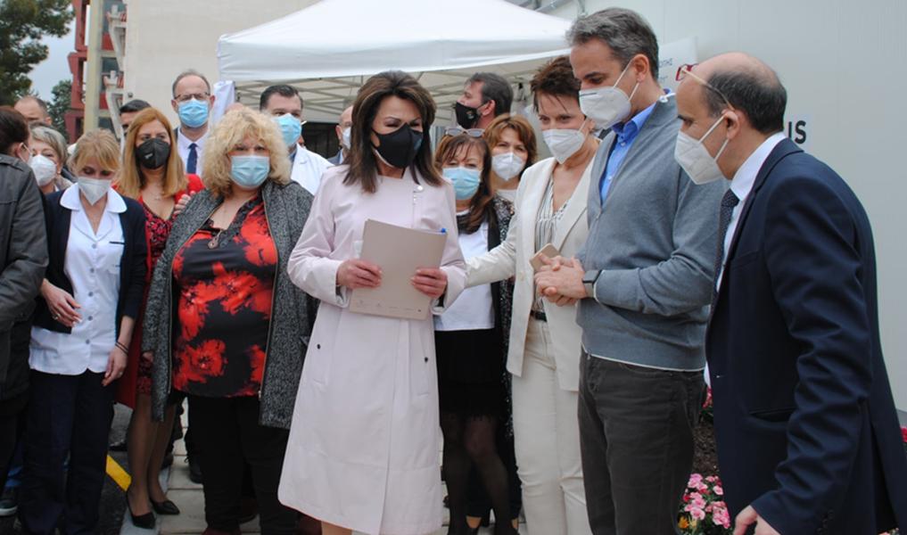 Στους χώρους του νοσοκομείου, τον Πρωθυπουργό υποδέχτηκαν η Διοικήτρια, Μαρία Γιογκατζή, ο Αν. Διοικητής, Δημήτρης Βαλαρούτσος καθώς και ο Διοικητής της 3ης Υγειονομικής Περιφέρειας Μακεδονίας, Παναγιώτης Μπογιατζίδης. Τον Πρωθυπουργό συνόδευσαν ο Αναπληρωτής Υπουργός Υγείας, Βασίλης Κοντοζαμάνης, ο Γενικός Γραμματέας της Βουλής των Ελλήνων, Γιώργος Μυλωνάκης και ο Γενικός Γραμματέας Υπηρεσιών Υγείας, Ιωάννης Κωτσιόπουλος.
