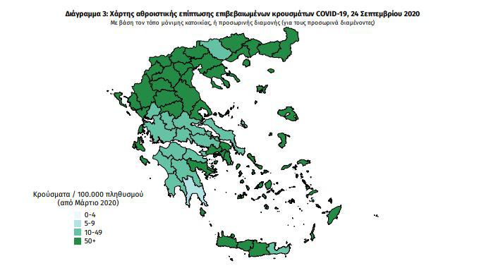 Σταθερά στην Αττική εντοπίζεται το πιο κρίσιμο μέτωπο για την διαχείριση της πανδημίας του κορωνοιού αφού και σύμφωνα με τα σημερινά στοιχεία για την πορεία της πανδημίας στη χώρα, εκεί εντοπίζονται τα περισσότερα κρούσματα τα οποία υπολογίζονται σε 213. Υπενθυμίζεται πως σήμερα, 24/09/2020 δηλώθηκαν 342 νέα κρούσματα. Από τα 312 εγχώρια κρούσματα, τα 24 συνδέονται με γνωστές συρροές.