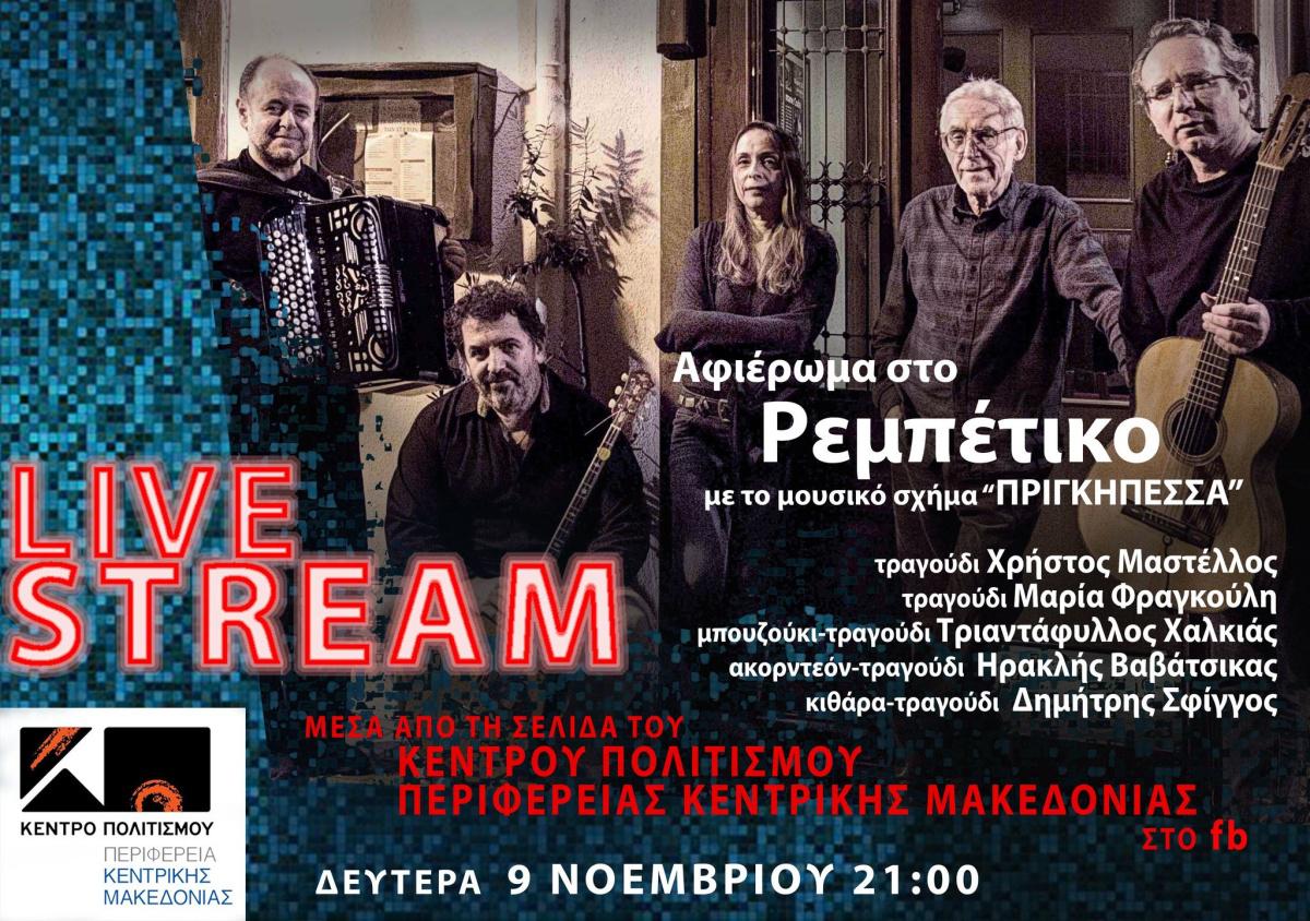 «Αφιέρωμα στο Ρεμπέτικο» με το μουσικό σχήμα της «Πριγκηπέσσας» που θα επιχειρήσει να κάνει ένα ξεχωριστό αφιέρωμα στο προπολεμικό και το μεταπολεμικό ρεμπέτικο τραγούδι. Καταξιωμένοι μουσικοί θα παρουσιάσουν μια επιλογή από έργα του Τσιτσάνη, Καρβέλη, Μητσάκη, Παπαϊωάννου, ένα πρόγραμμα βαθιά επηρεασμένο από παραδοσιακούς δρόμους.