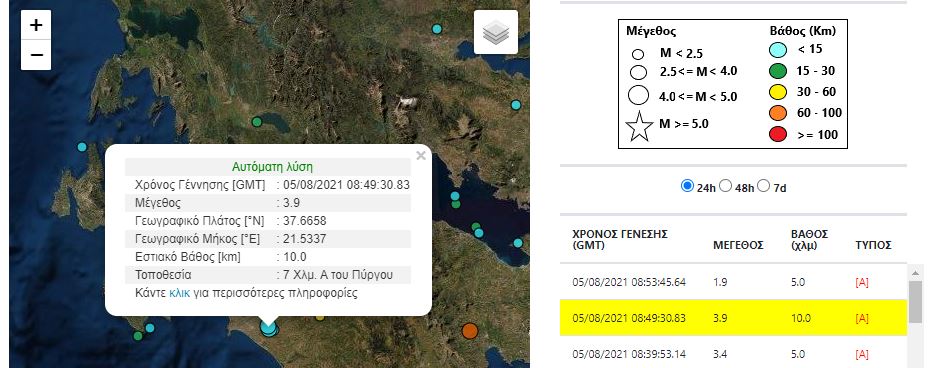 Σύμφωνα με το Γεωδυναμικό Ινστιτούτο οι δονήσεις έγιναν αισθητές στην περιοχή του Πύργου γιατί ήταν σε μικρό εστιακό βάθος.